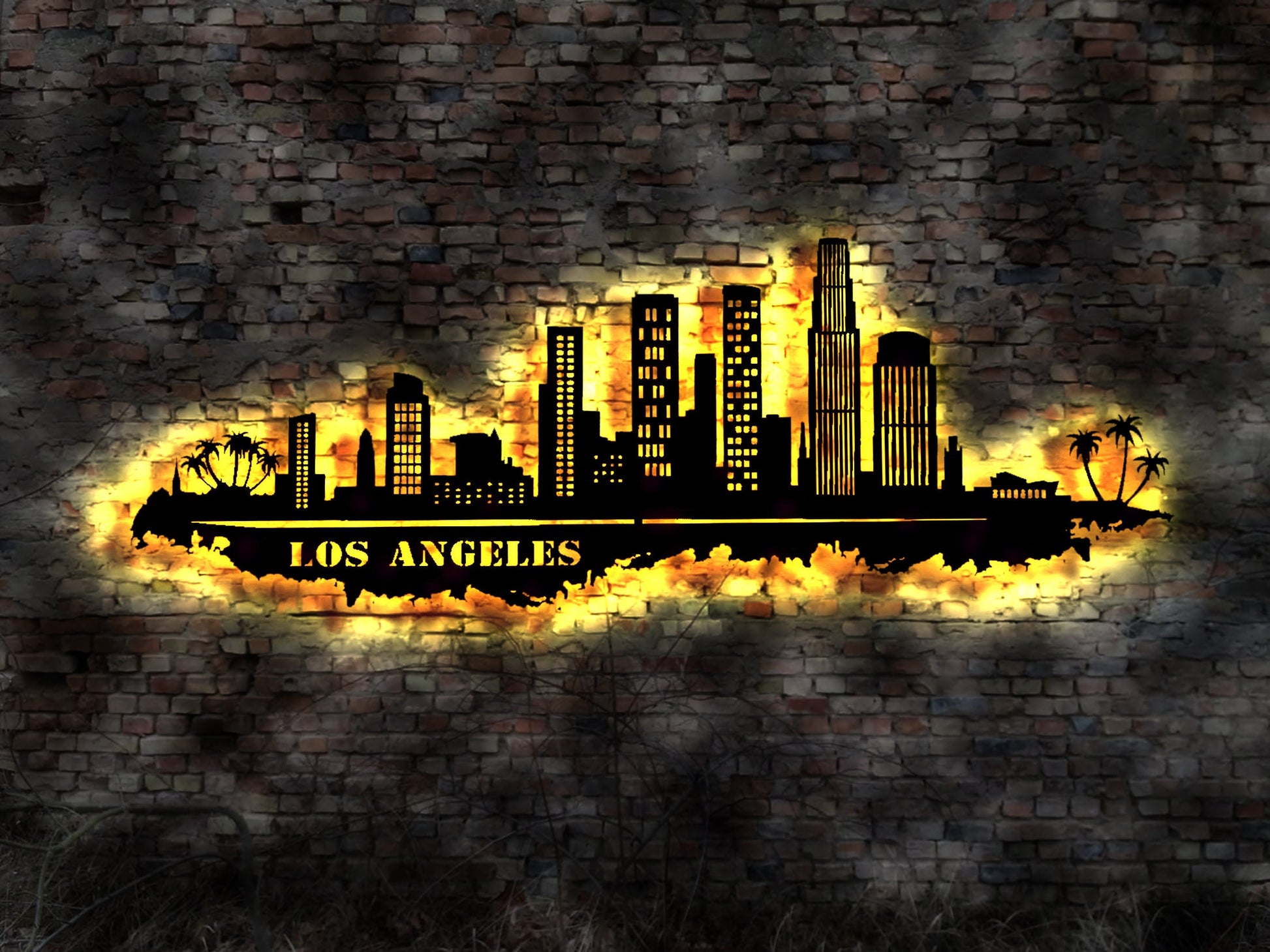 Skyline Los Angeles LED Wandbild Holz Stadt AK Karte Map