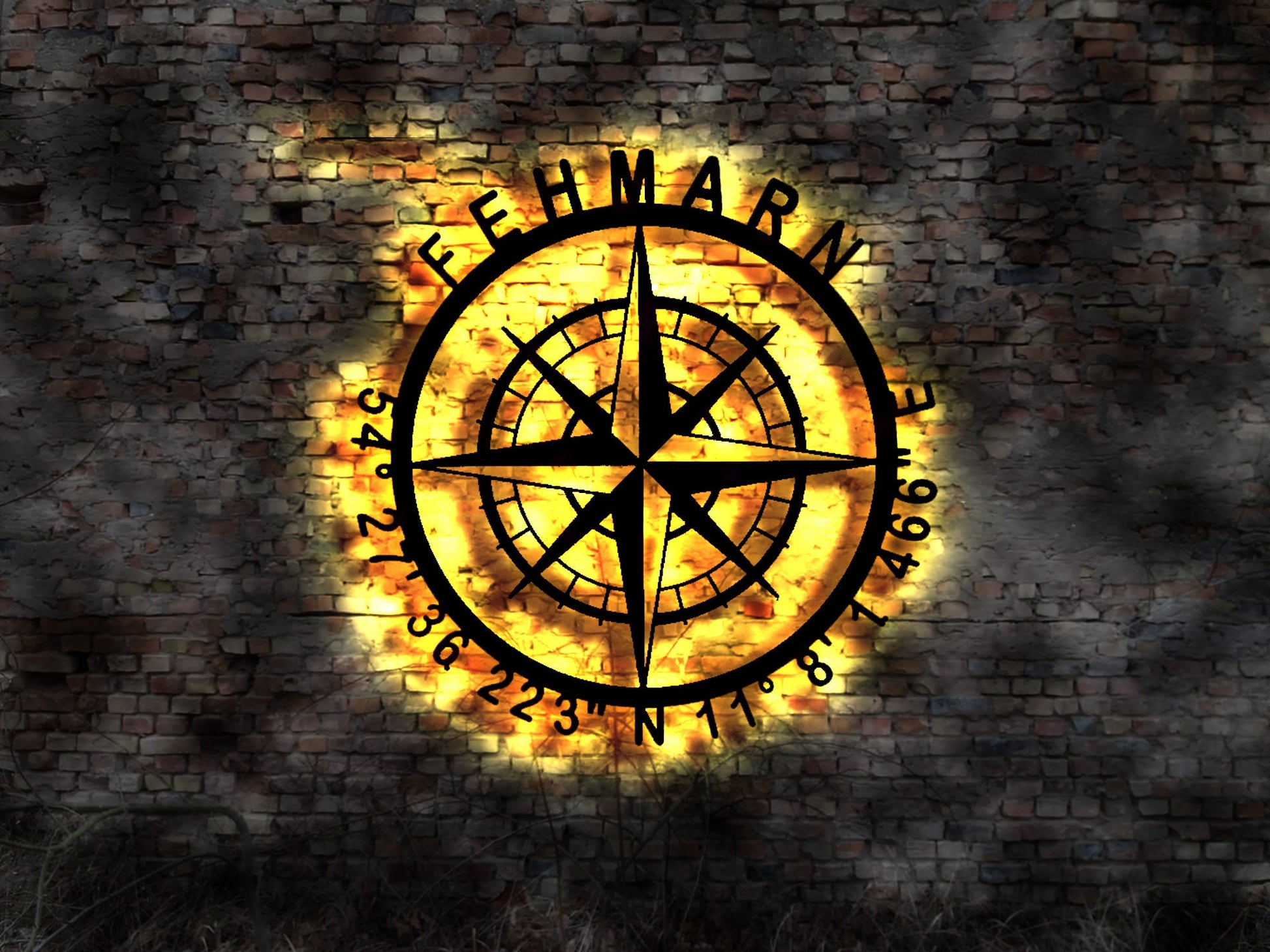 Fehmarn Insel Urlaub LED Wandbild Holz Stadt AK Karte Map Wandsticker Leuchtbild Neonreklame Wandtattoo Reiseführer Silhouette