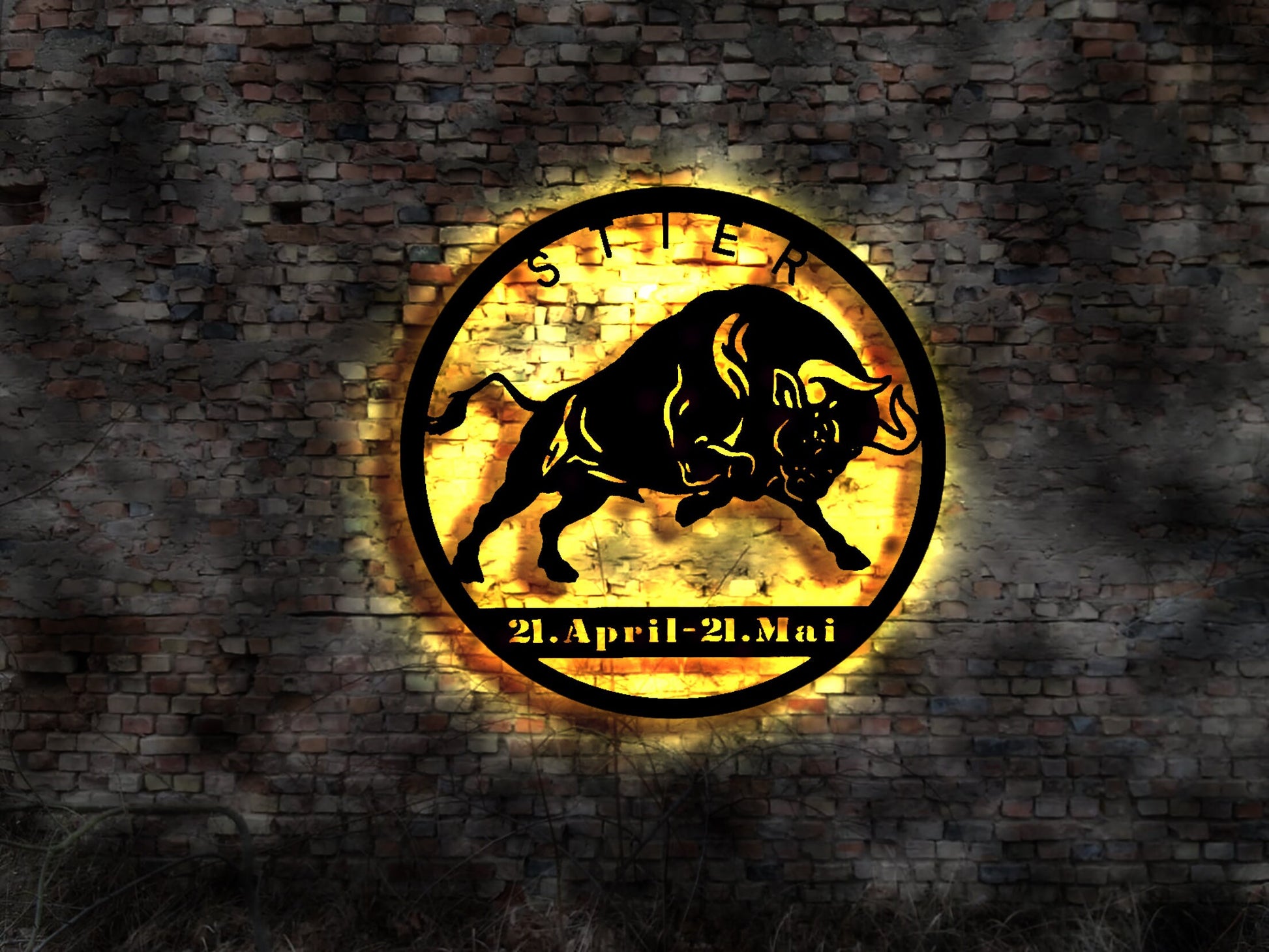 3D LED Wandbild Sternzeichen Horoskop Wandtattoo Aufkleber Neon Sign Stier Kette Halskette Tierkreiszeichen Schild signWandtattoo Bild