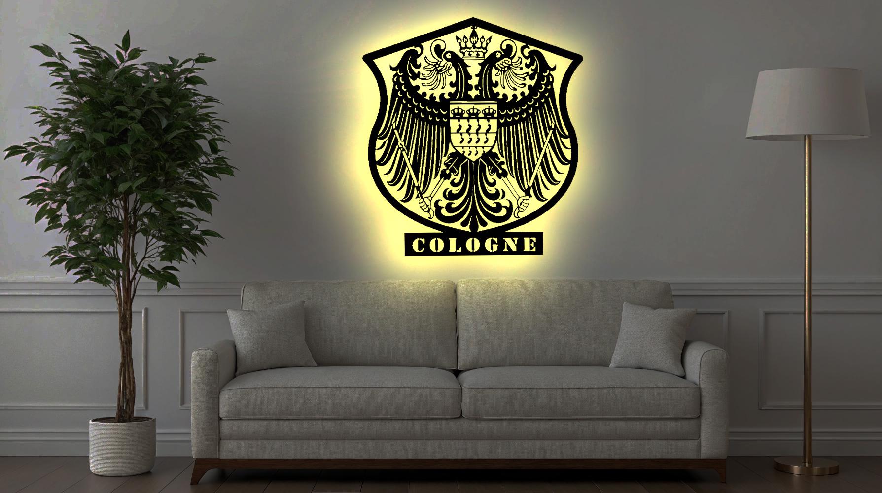Wappen Köln LED Wandbild aus Holz Stadt AK Karte Map Stadtplan Wandsticker Leuchtbild Cologne