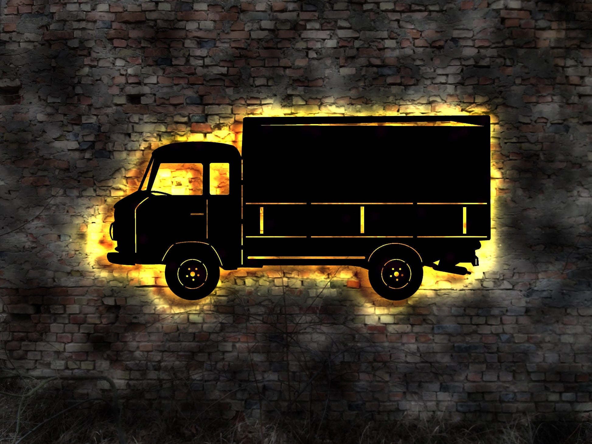 LED Wandbild DDR Transporter Fahrzeug LKW Traktor Auto Oldtimer Youngtimer