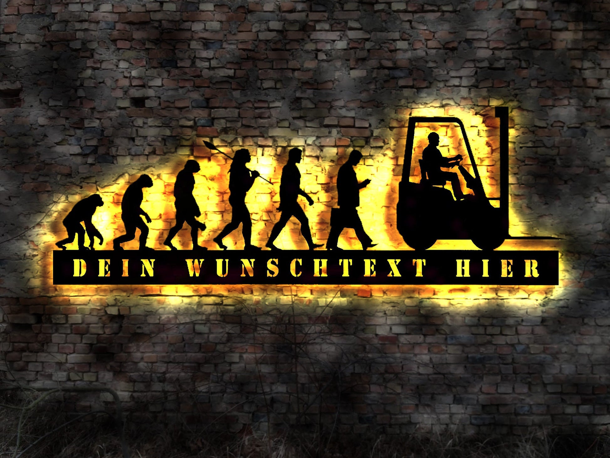 Gabelstapler Evolution Leuchtschild LED Wandbild Stapler Staplerschein Gabelstaplerfahrer Fahrer
