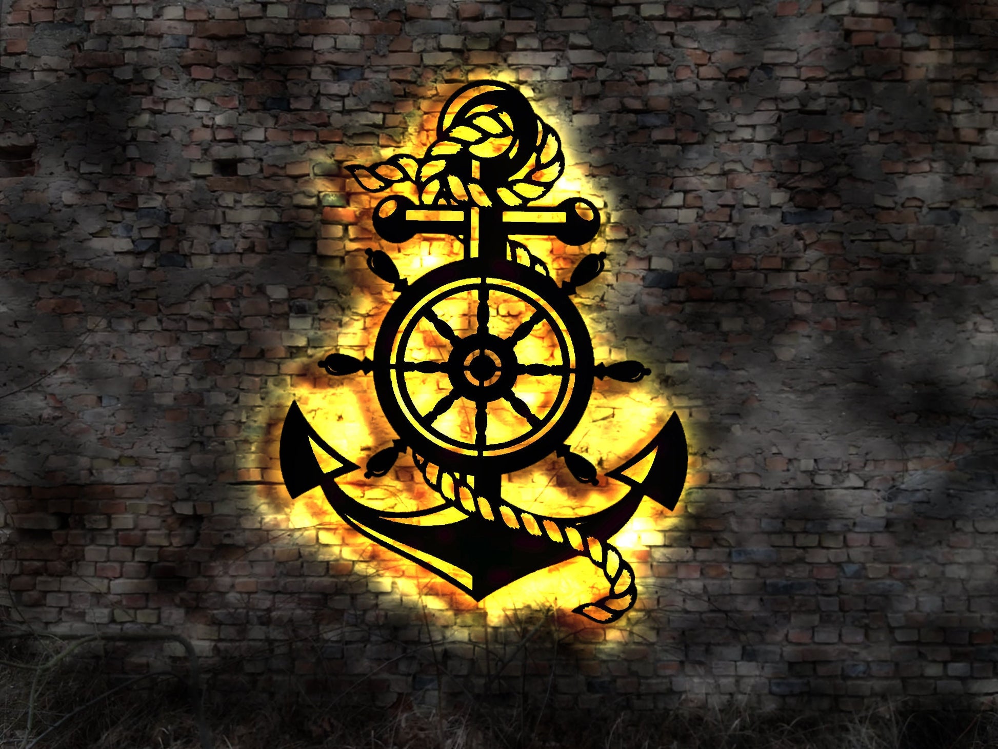 Bild LED Steuerrad Tau Segel Anker Seemann Seefahrer Kapitän Mütze Segelschiff Seefahrt