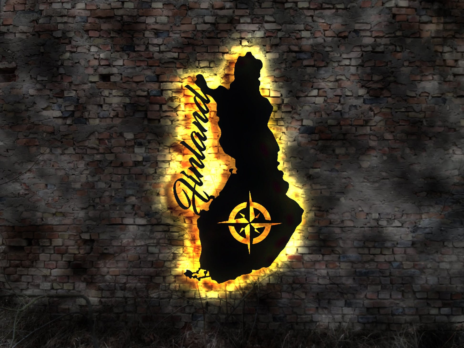 Finnland LED Wandbild Leuchtschild Angler Verein Reklame Angelroute Kescher Angelhaken Hechtköder Fjord Gewässer Seen