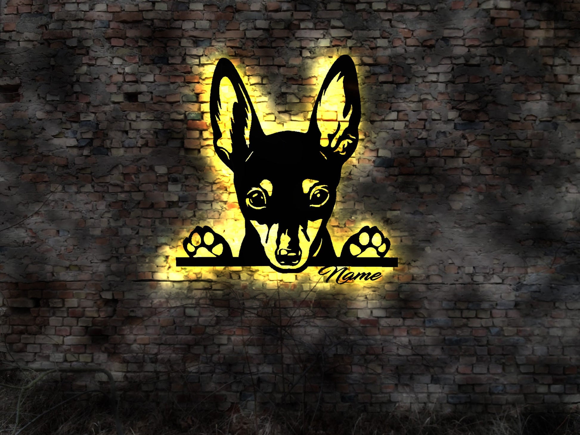 American Toy Fox Terrier LED Wandbild aus Holz Welpen Welpe Buch