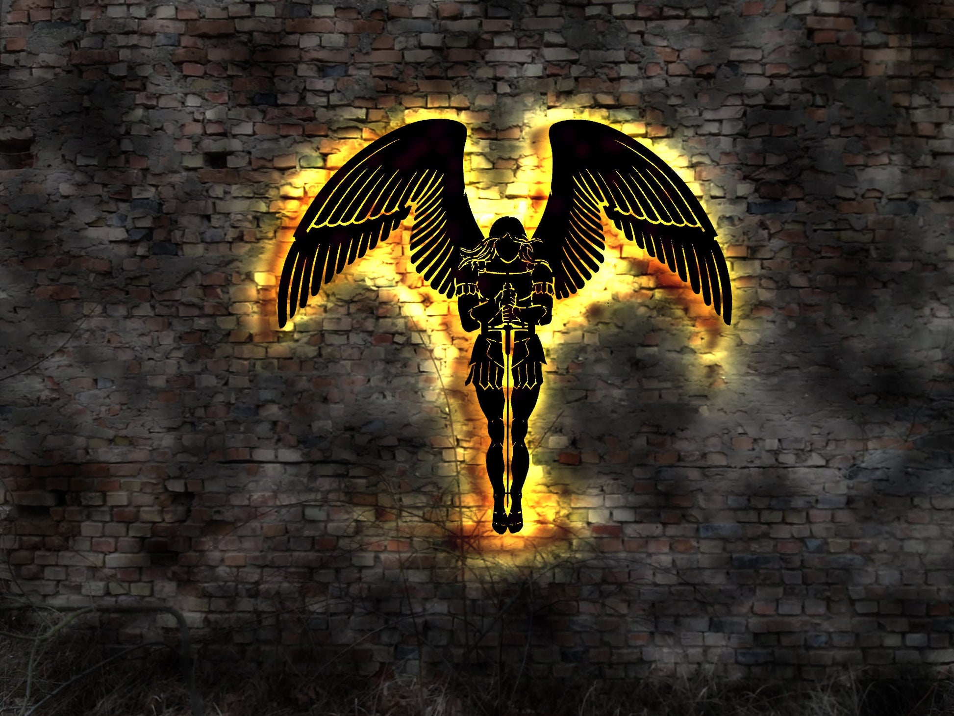 Michael Raphael Armulett Figur Skulptur Unze Erzengel Schild Uril Statue Schild Buch Bild Wandbild Stromprüfer Schild LED Deko Wandsticker