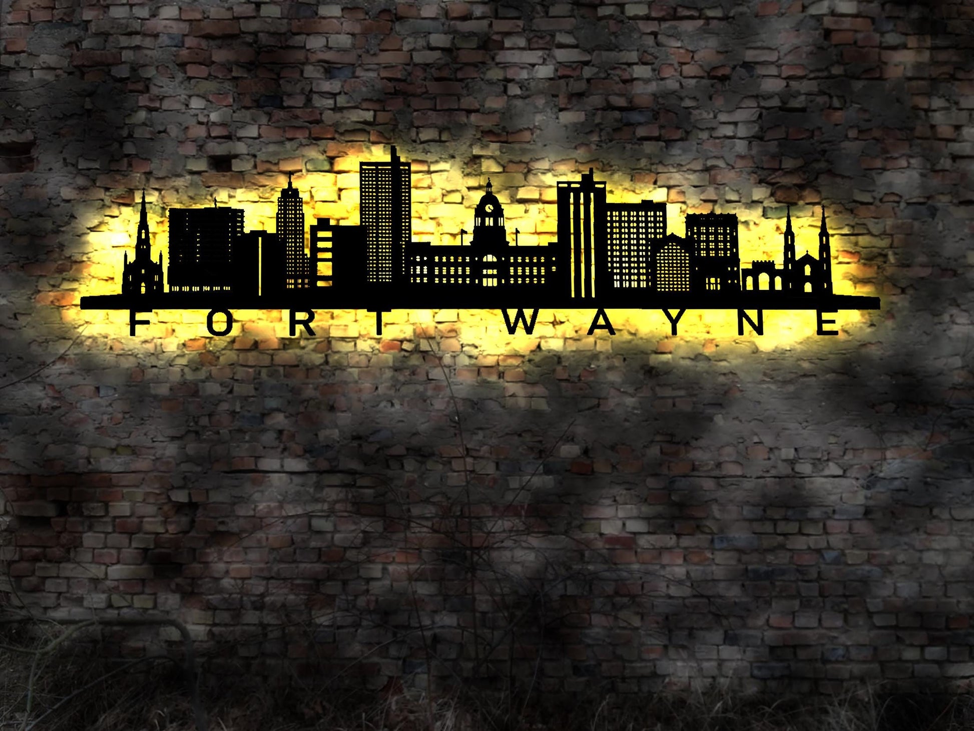 Skyline Skyline Fort Wayne USA LED Wandbild Holz Sticker Poster Silhouette Tattoo