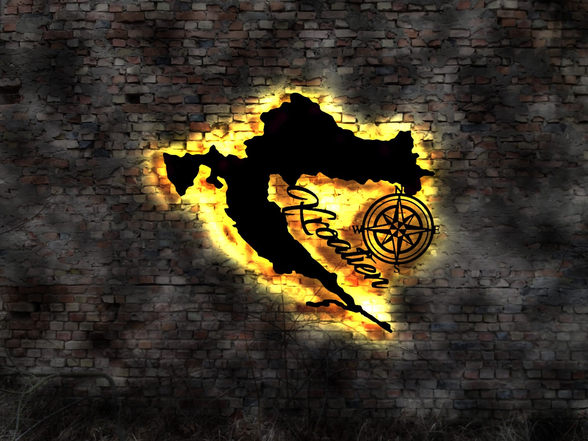Das Wandbild hängt in einem Abstand von ca. 1 cm zur Wand, wodurch ein toller 3D-Effekt entsteht. Der warmweisse LED -Streifen hat 12 V und ist hinten im 90 Grad Winkel mit Schellen befestigt (geschraubt) , er kann bei Bedarf auch gewechselst werden.