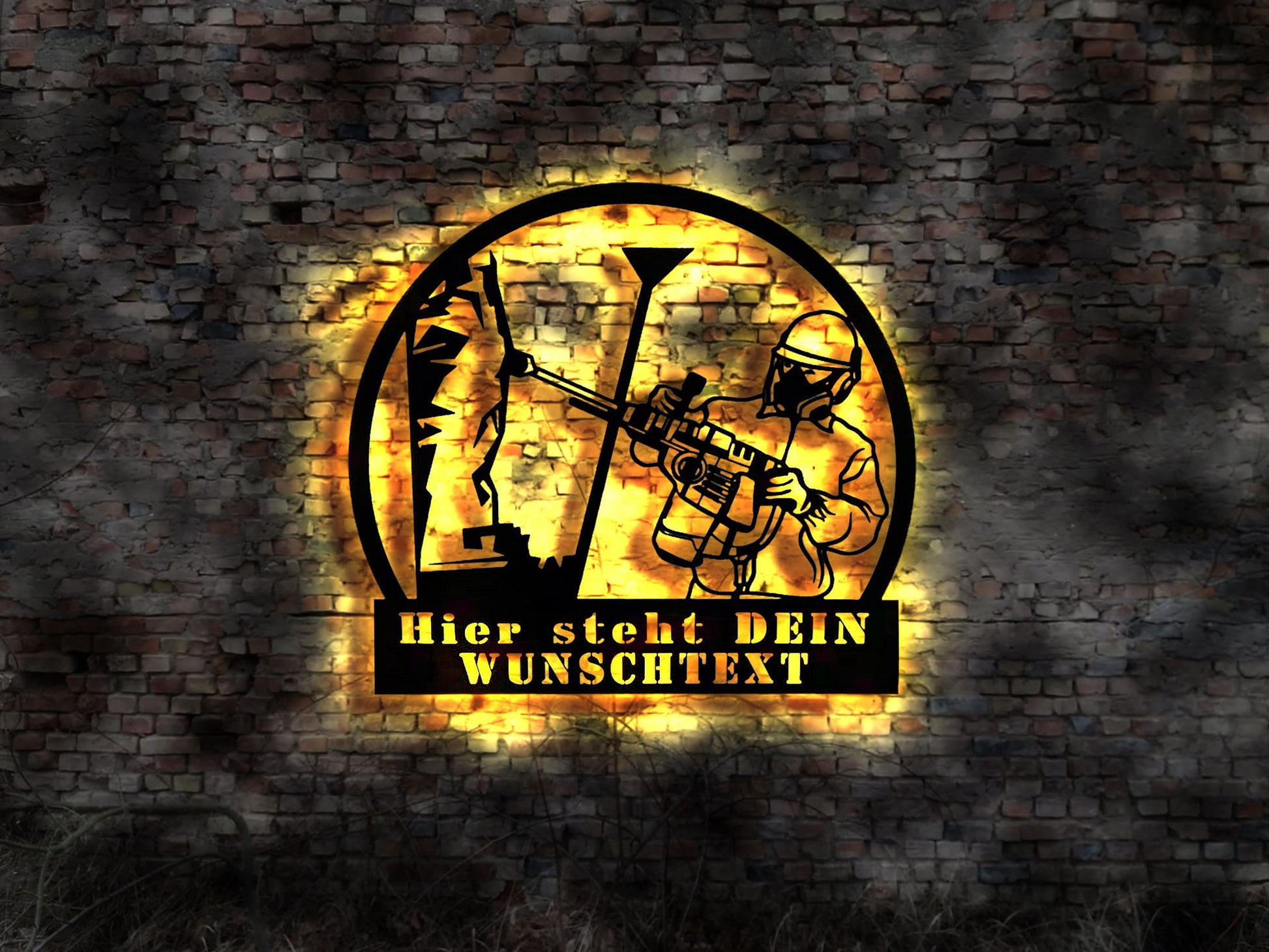 3D Wandbild Abbruch Abriss Firma Firmenschild LED Abrissunternehmen Abbruchfirma Bagger Abrissglocke Vorschlaghammer Schutt Entsorgung