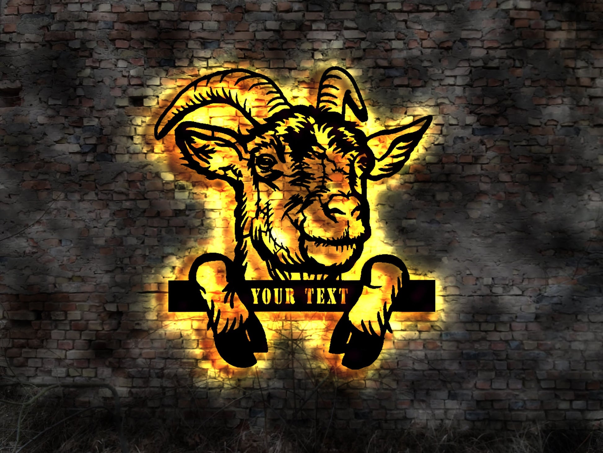 3D LED Schild Ziege Ziegen Ziegenbart Hörner Huftier no Aufkleber Bild