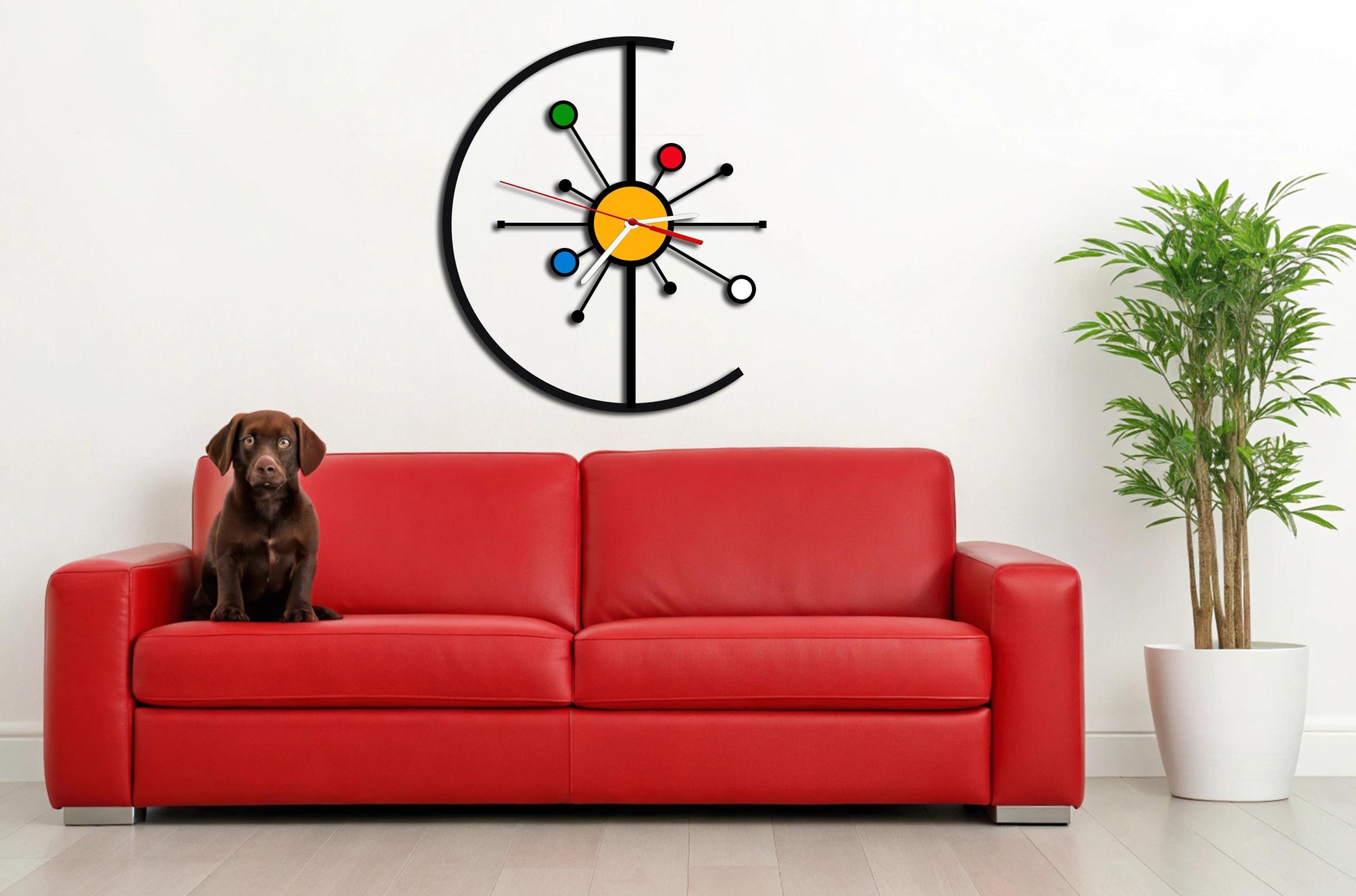 Geniale Wanduhr aus schwarz lackiertem Holz , Stärke: 6mm