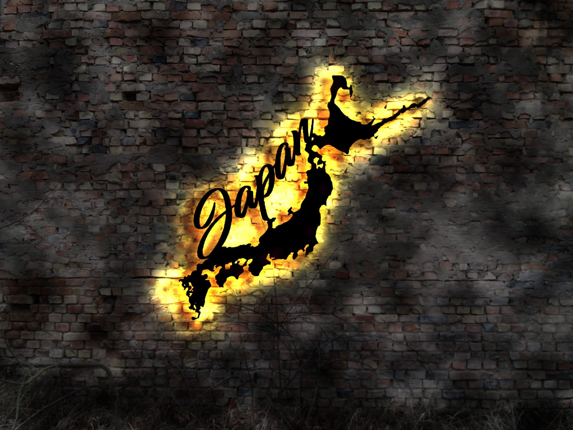 Skyline Japan japanese food LED Wandbild Holz Stadt AK Karte Map Wandsticker Leuchtbild Neonreklame Wandtattoo Reiseführer Silhouette Ozean