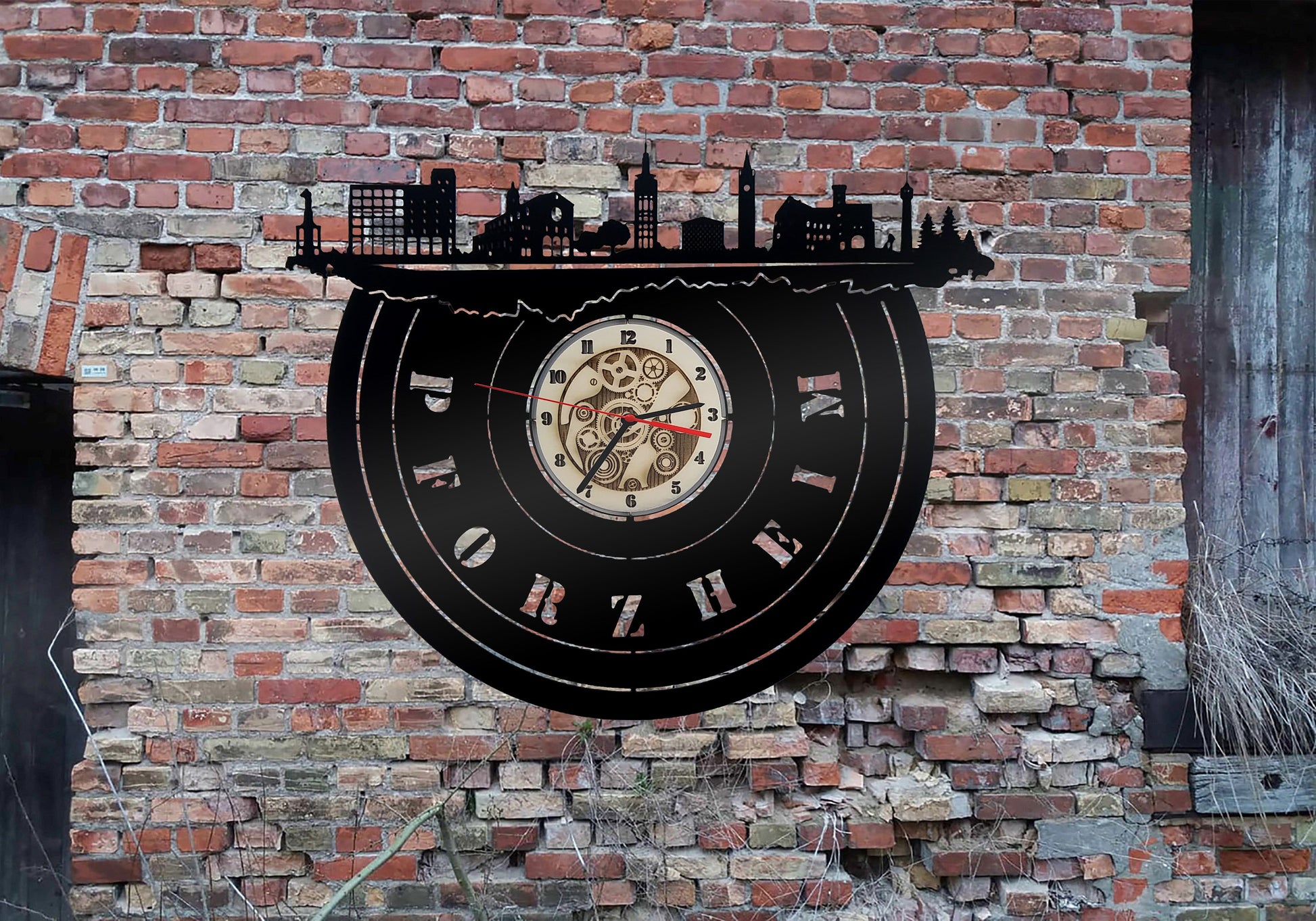 Pforzheim Wanduhr Uhr Holzuhr Uhren Ziffernblatt Clock Holz Armbanduhr Skyline Silhouette Aufkleber