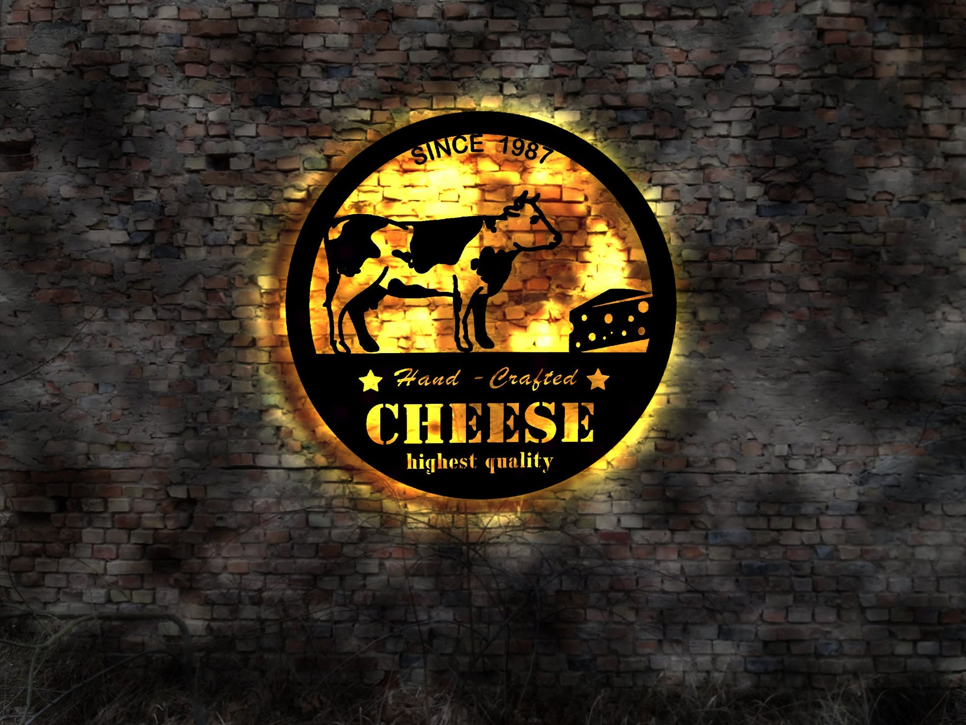 Käse Molkerei Aufsteller Reklame Landwirt Traktor Acker Land Kuh Landwirtschaft Leuchtschild Bardeko BarSchild Werbung cheese milk Milch