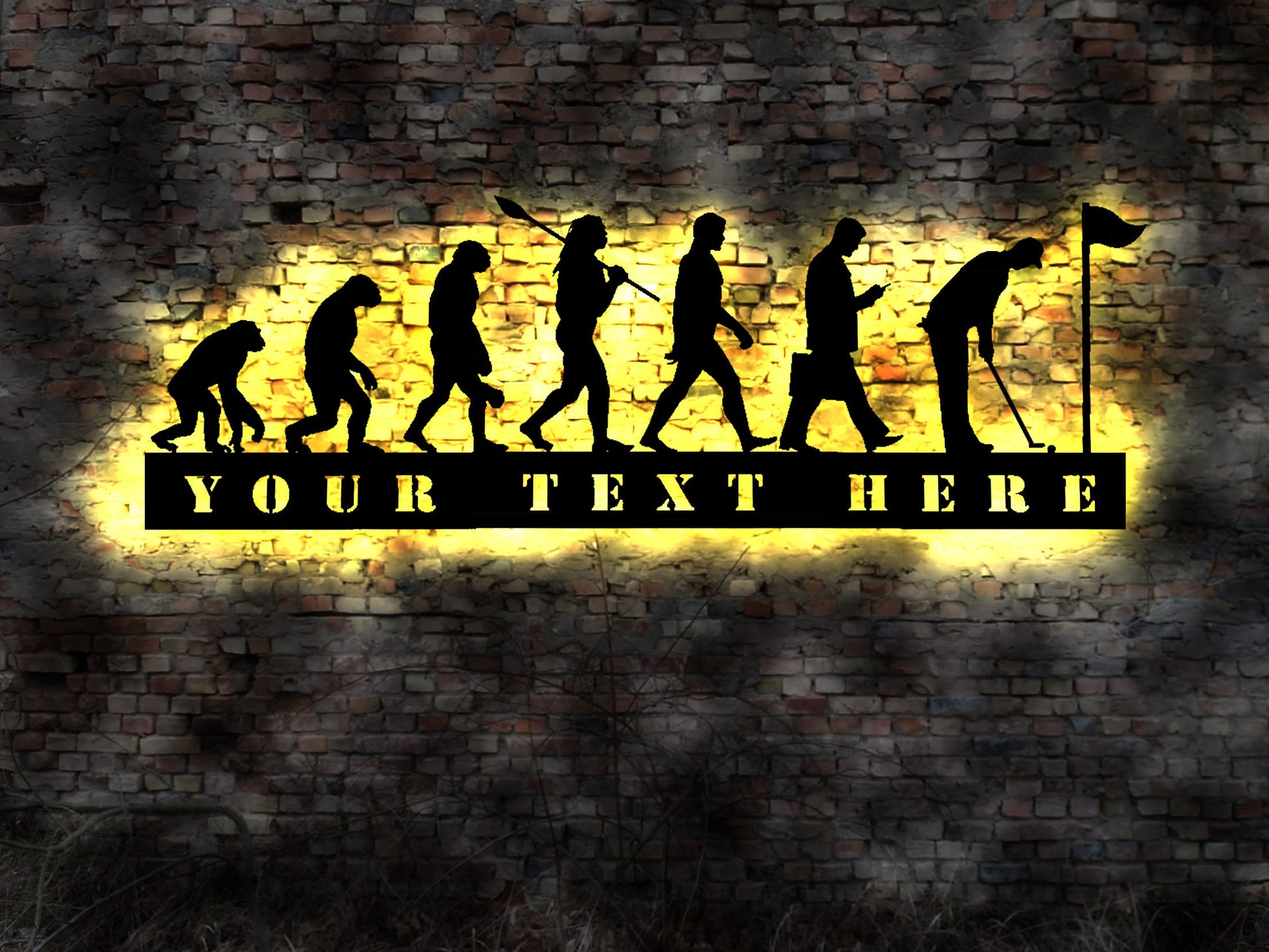 Evolution of Golf Sport Club Deko Ausrüstung Schläger Wagen Golfbälle Golftasche Golfschläger Leuchtschild LED Leuchtreklame Poster Bild
