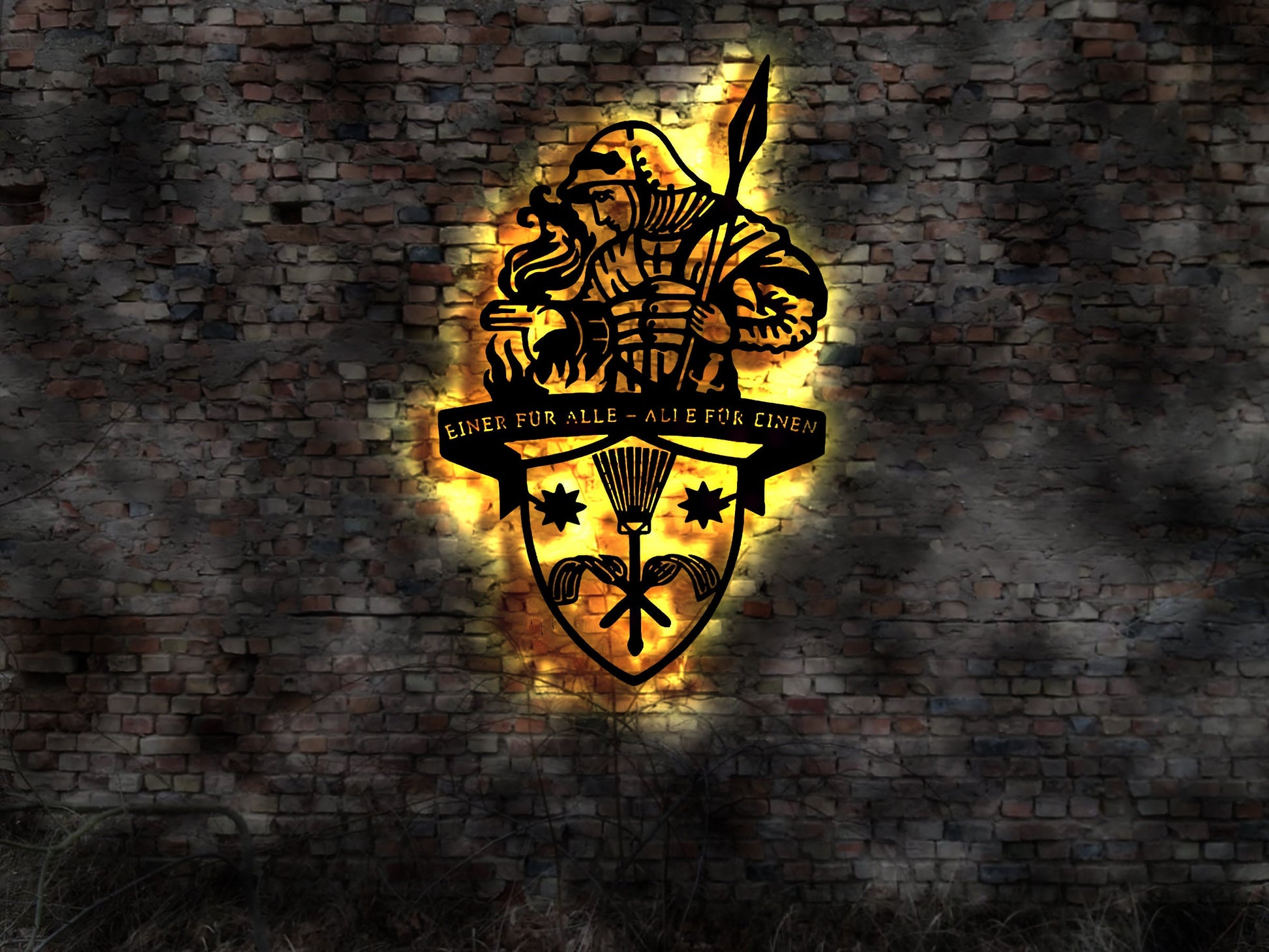 Made of wood. Sign will be hanged with a little distance to the wall.