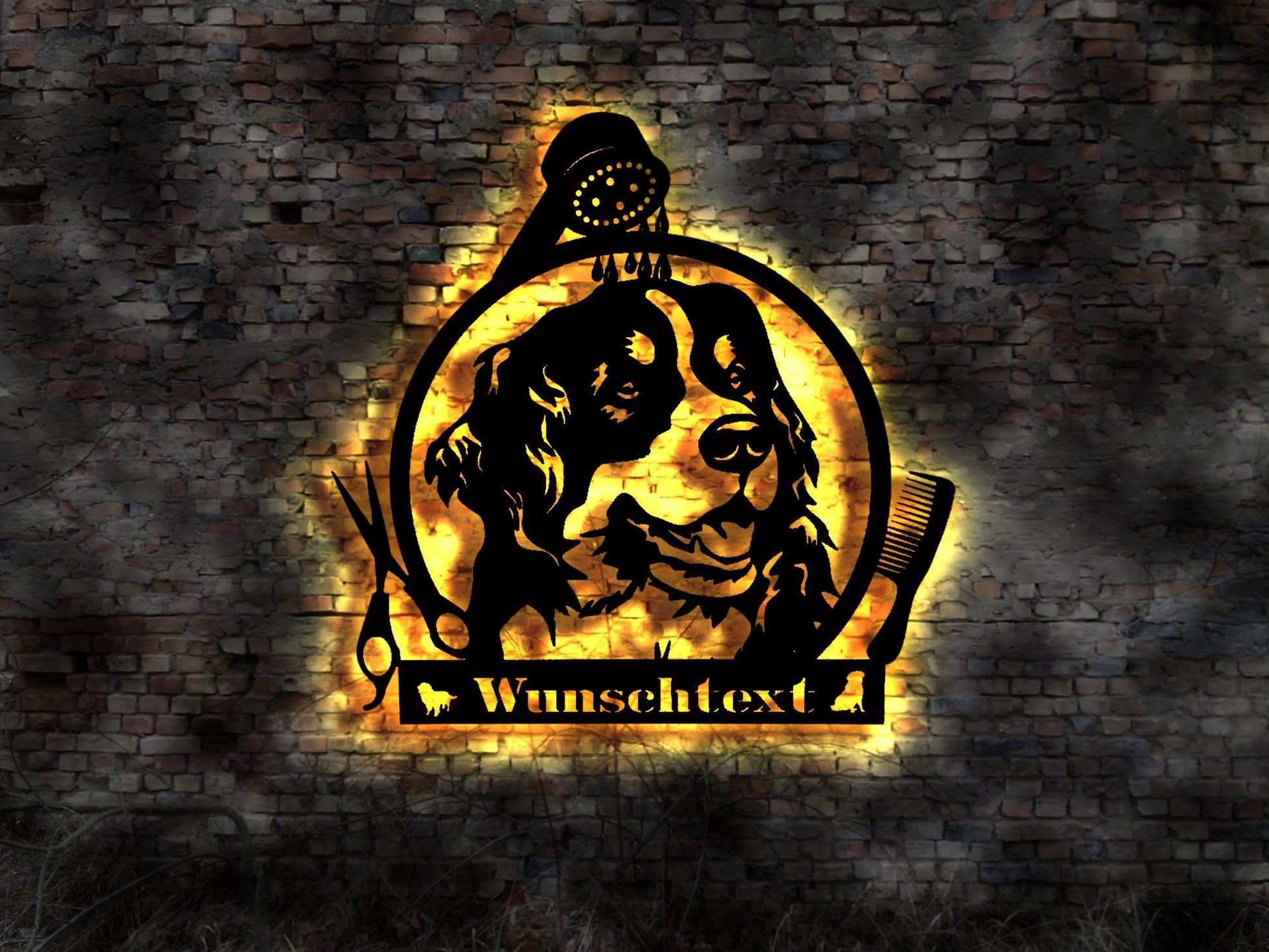 Hundefriseur Hunde Friseur Salon Schild Leuchtschild Dog Neon sign Schermaschine Tierfriseur Spiegel Kamm Tierkamm Schere Leuchtreklame Cat