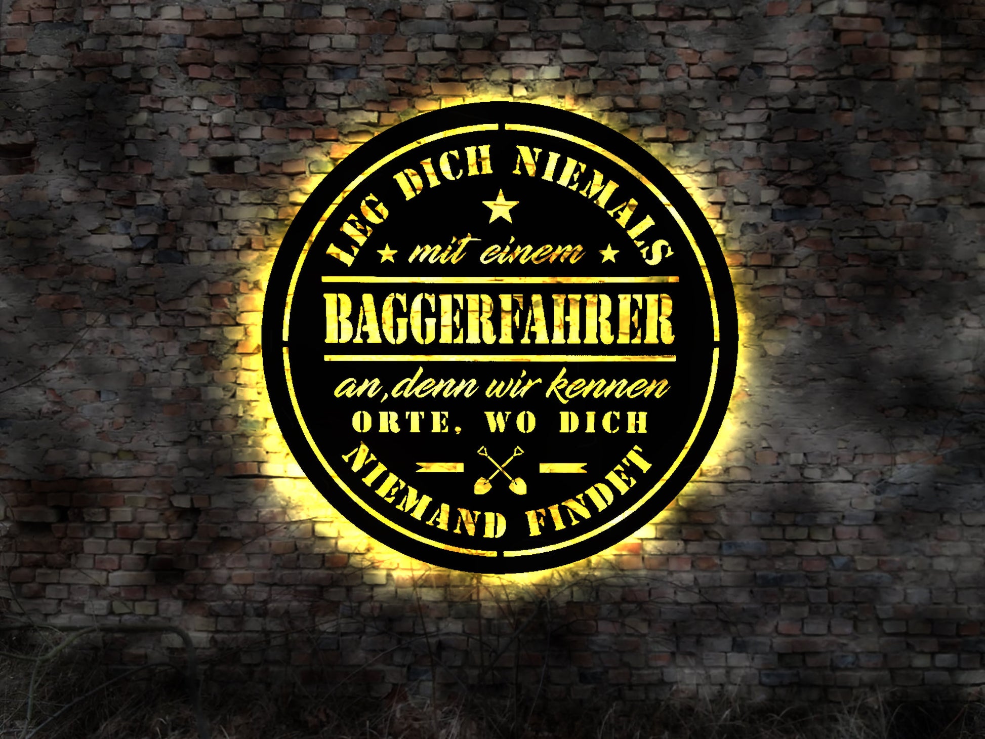 LED Wandbild Leuchtschild Bagger Baggerfahrer Logo Emblem Schild Aufkleber