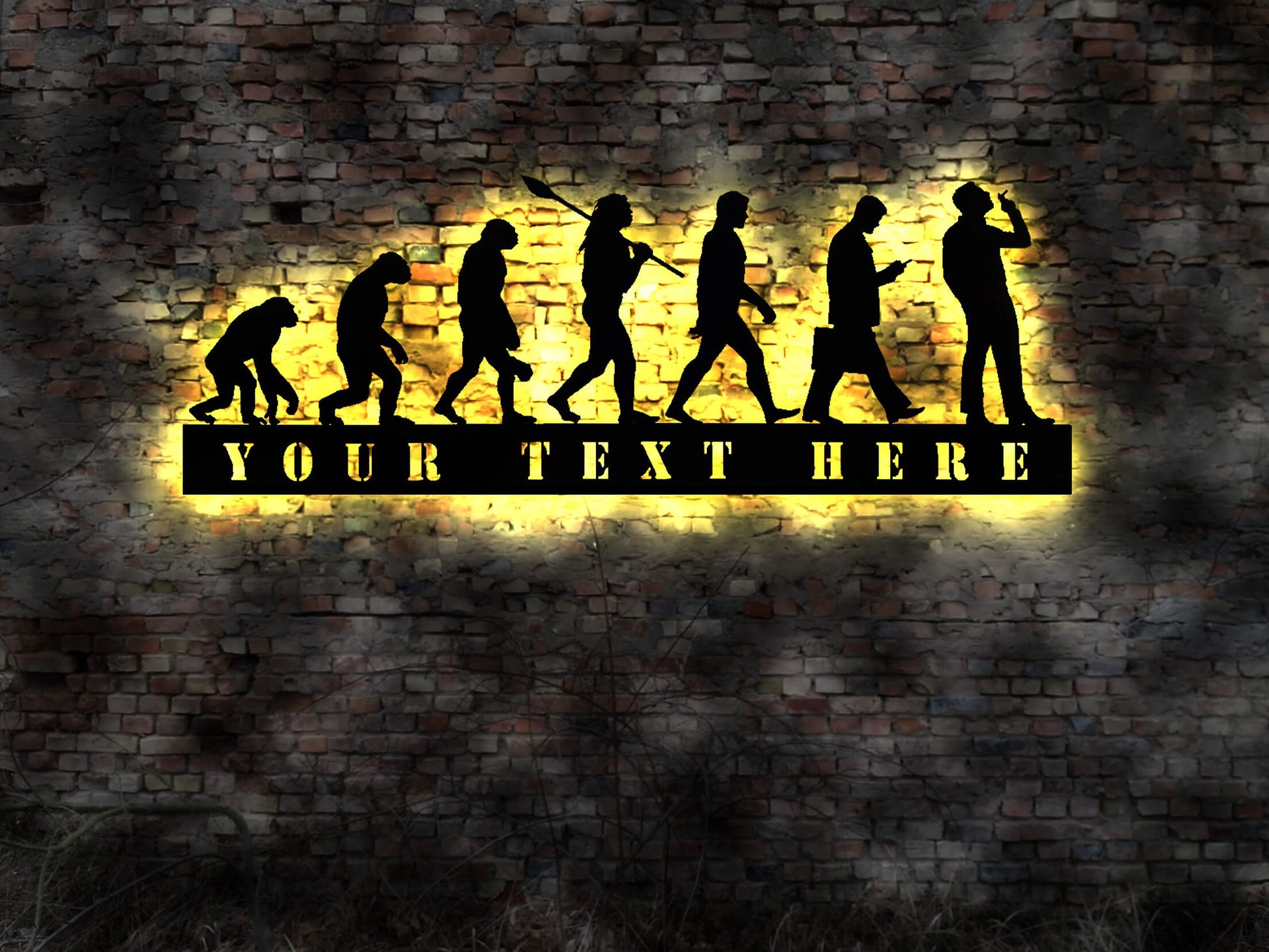 Made of wood. Sign will be hanged with a little distance to the wall.