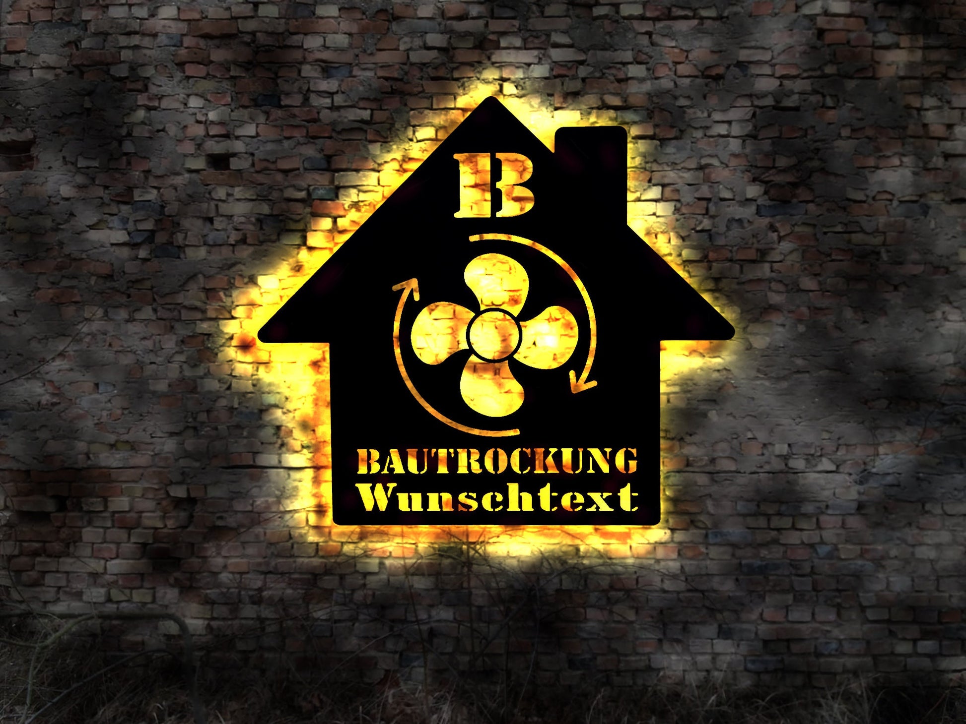 Beleuchtetes Schild Bautrocknung Firma Bautrockner Baufirma Trockenlegung trocken