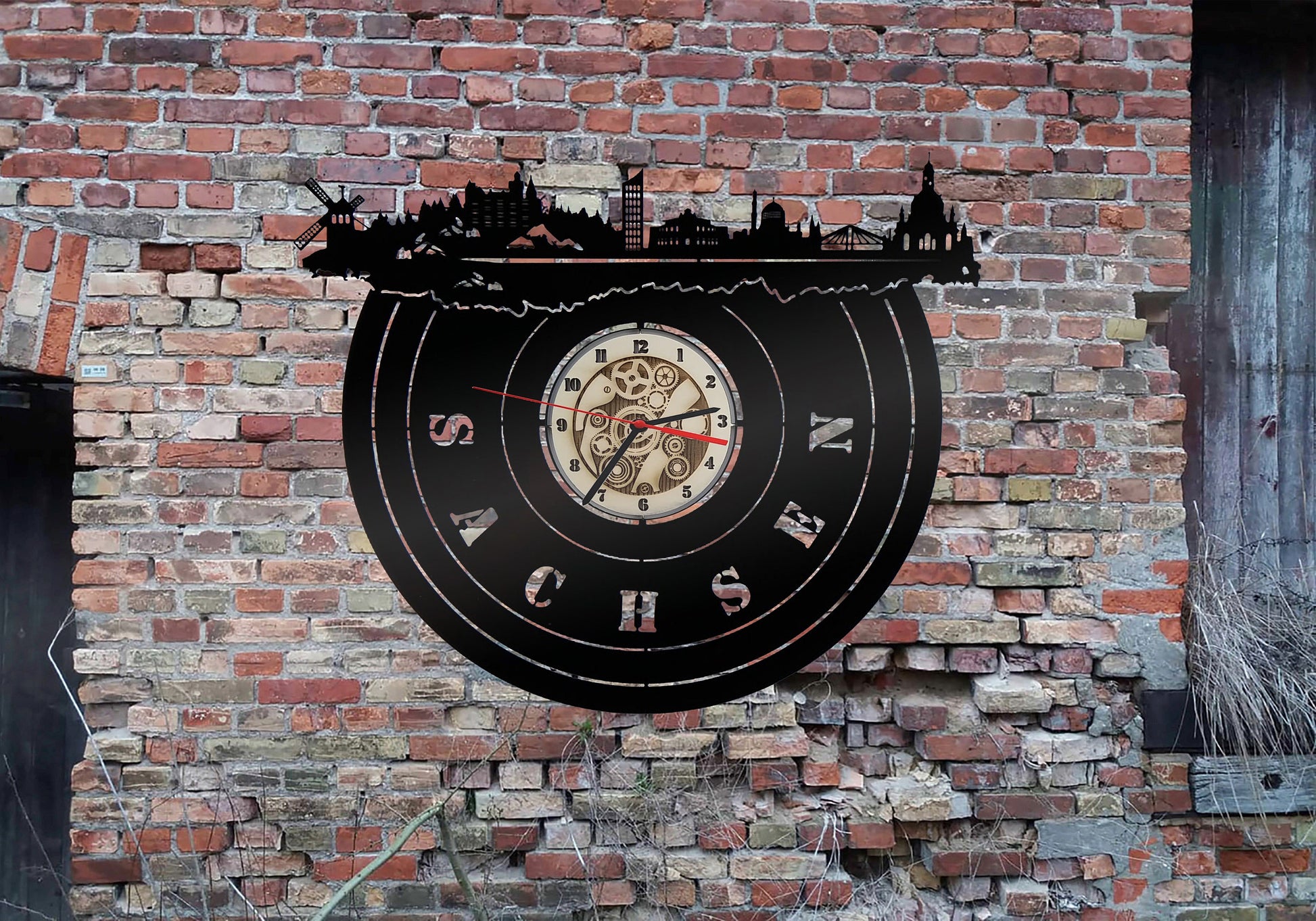Sachsen Bundesland Wanduhr Uhr Holzuhr Uhren Ziffernblatt Clock Holz Armbanduhr Skyline Silhouette Aufkleber