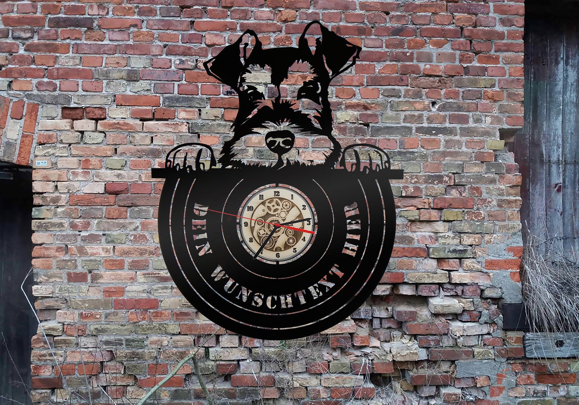 Schnauzer Wanduhr Uhr Holzuhr Uhren Ziffernblatt Clock Holz Armbanduhr wood wall sign sticker Welpen Welpe