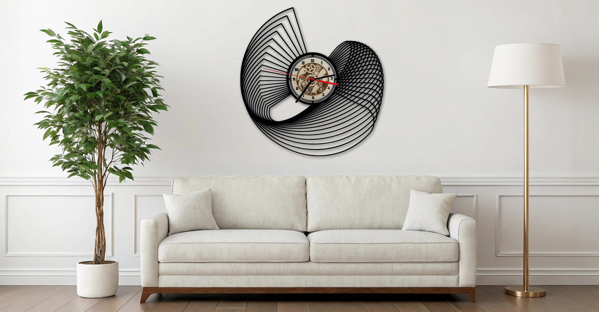 Geniale Wanduhr aus schwarz lackiertem Holz , Stärke: 6mm