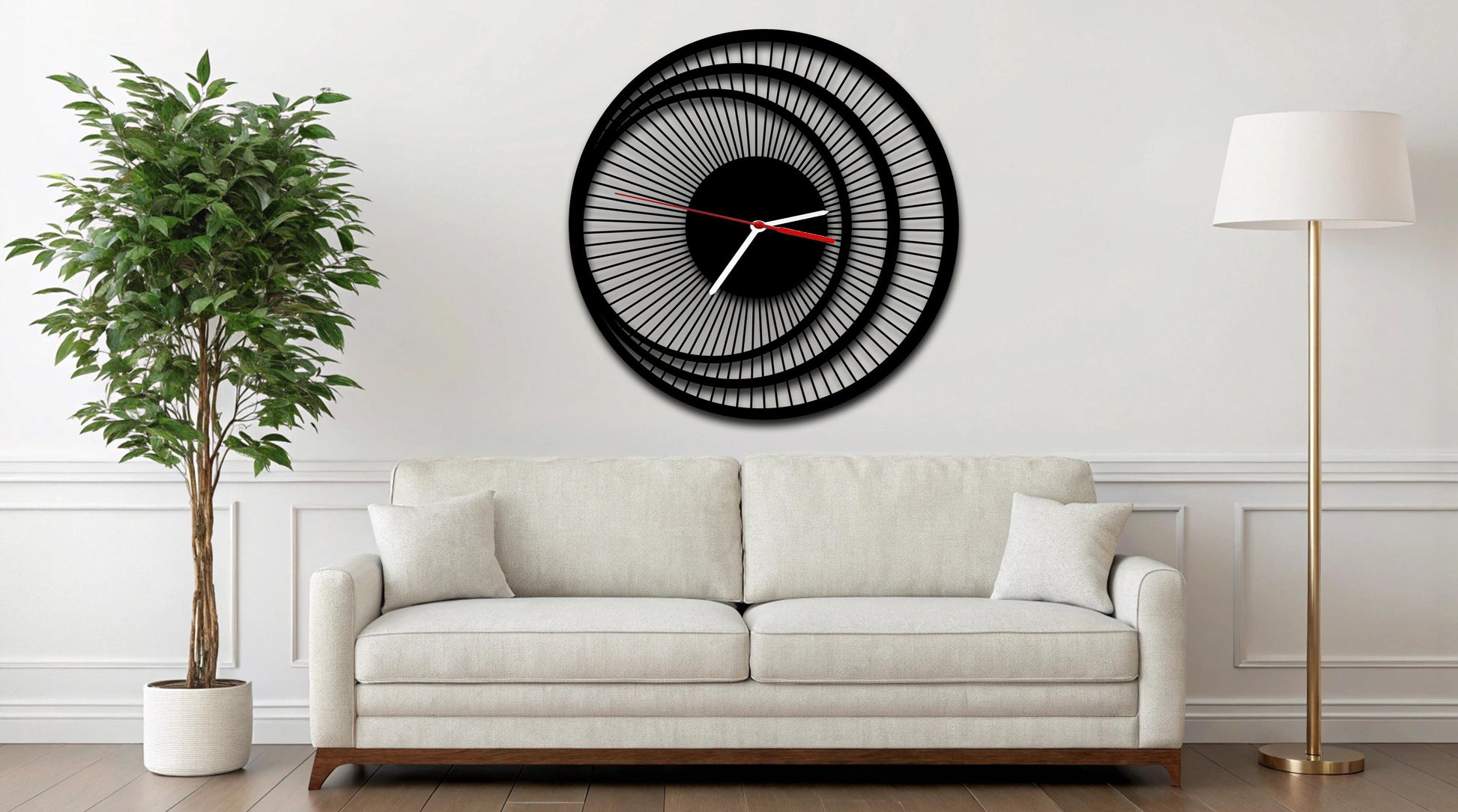 Geniale Wanduhr aus schwarz lackiertem Holz , Stärke: 6mm