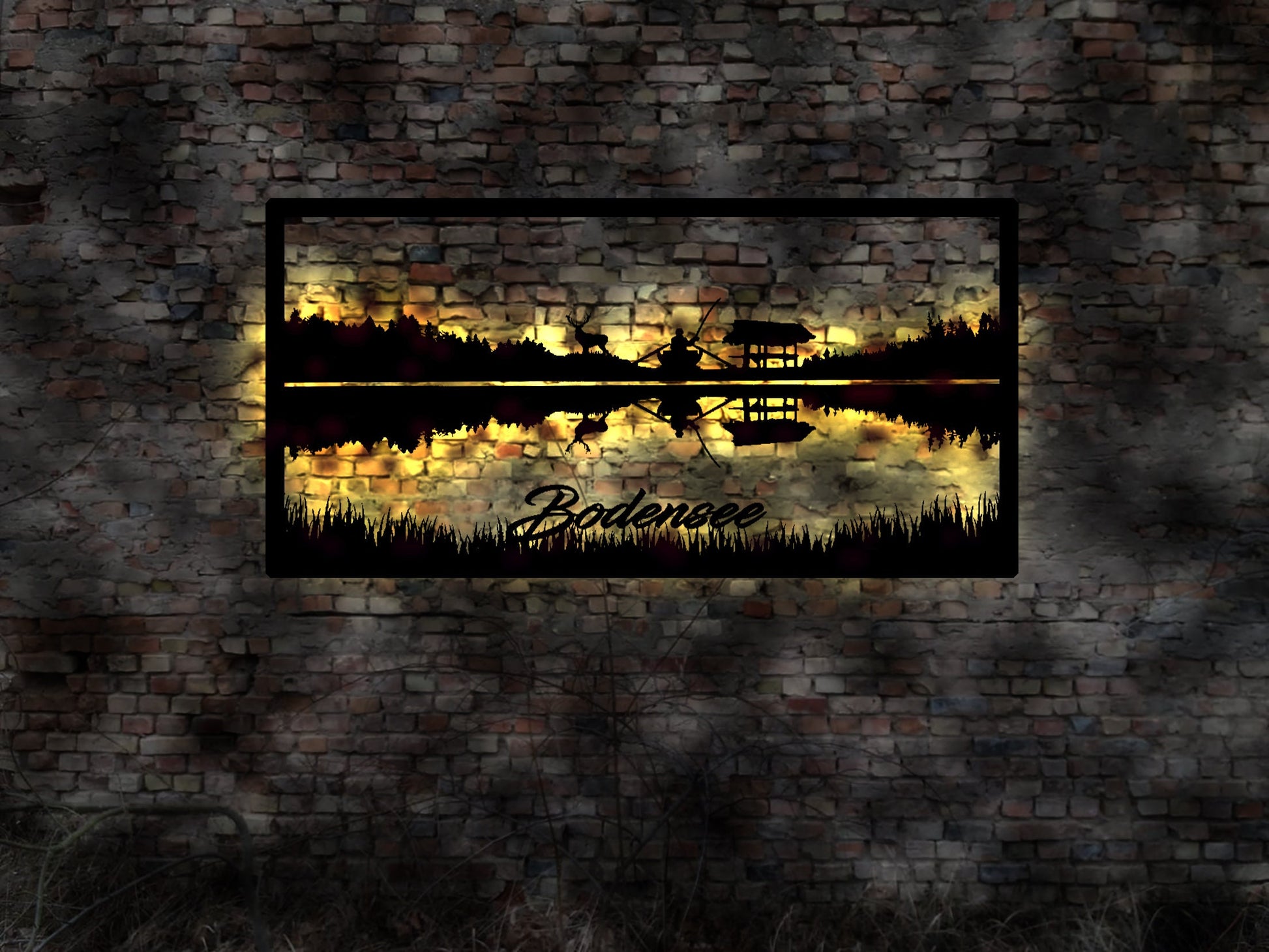Beleuchtete Skyline Bodensee Abendstimmung Flagge Fahne Urlaub Wanderkarte Buch Deko Zeichen Bild no Neonreklame Neon sign Silhouette Buch