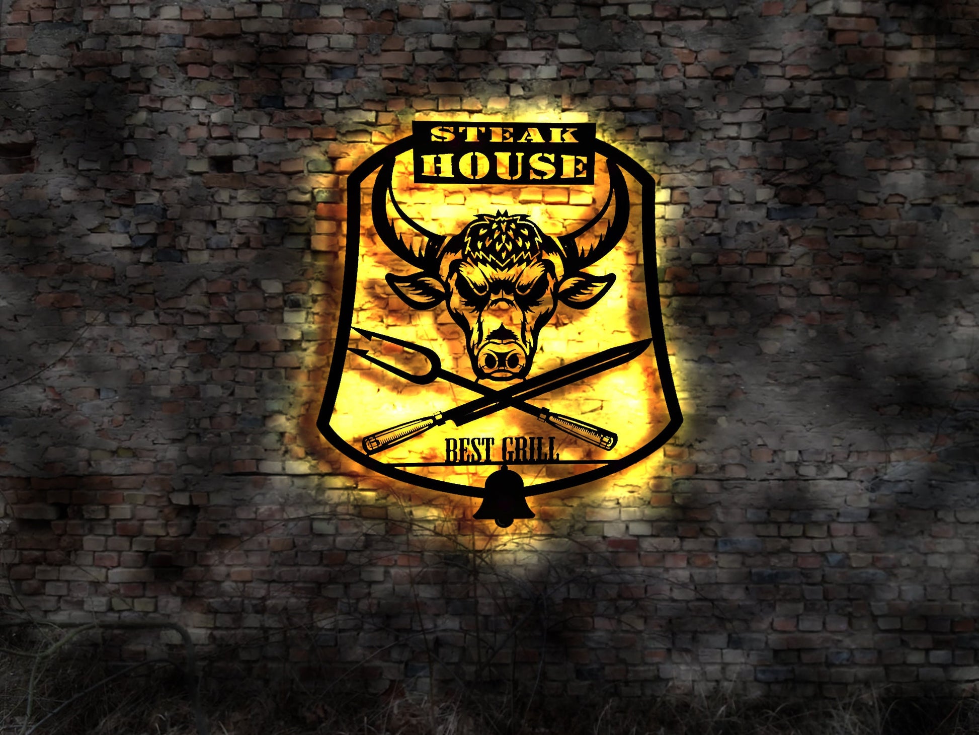 3D LED Wandbild Leuchtreklame Steak House Gaststätte BBQ Neon sign Schild Bild Gastro Grill Blechschild Wandtattoo Bild Imbiss Grillwagen