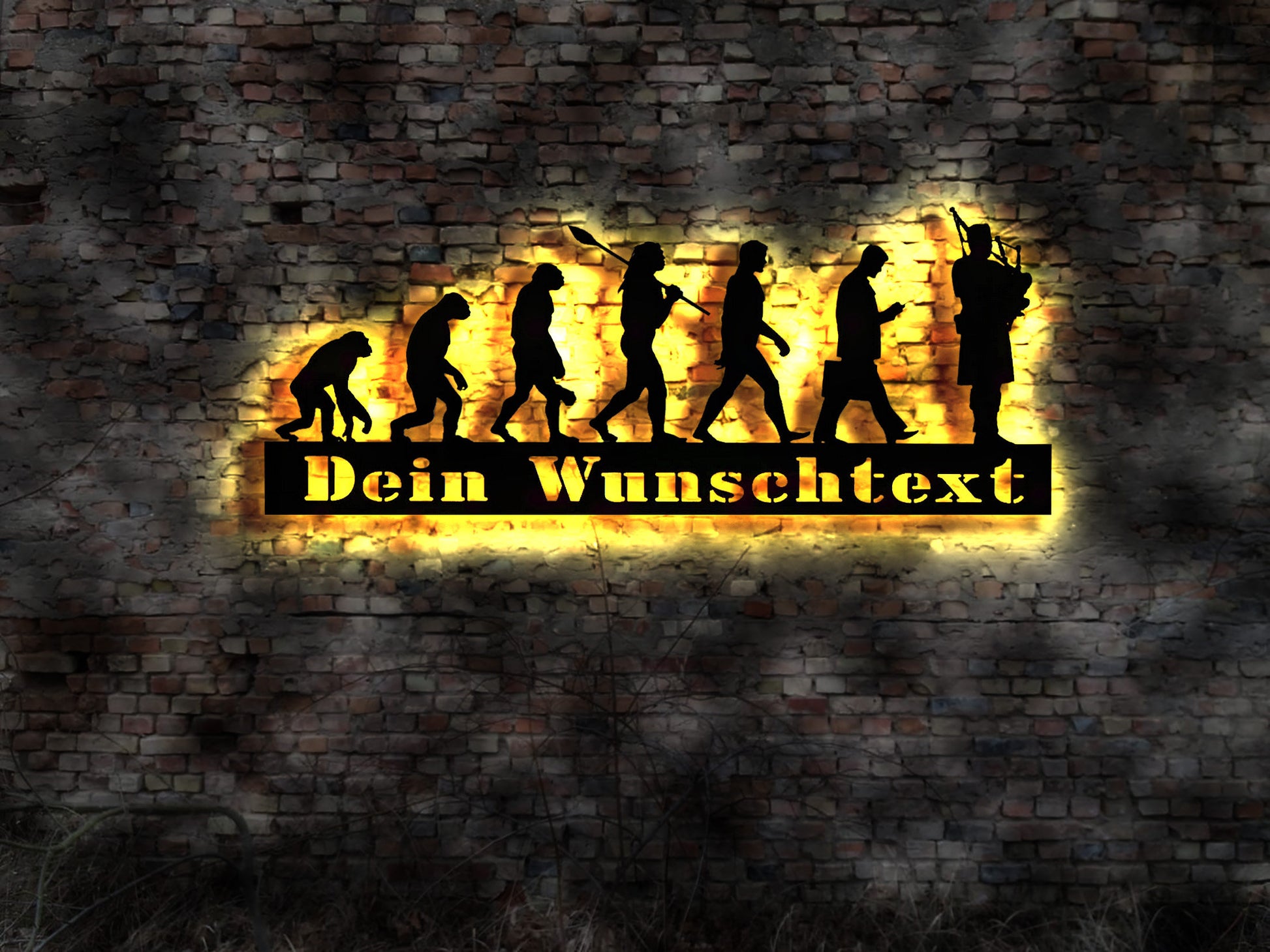 Dudelsack Spieler Evolution Scotland Schottland Kostüm LED Wandschild Bild sign