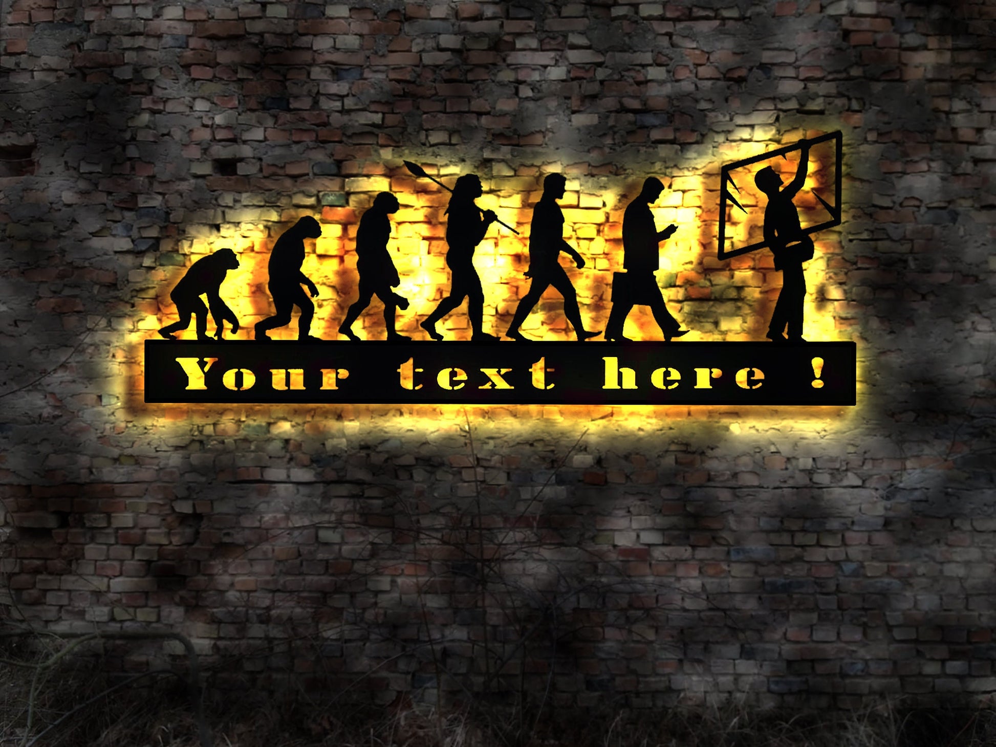 Made of wood. Sign will be hanged with a little distance to the wall.