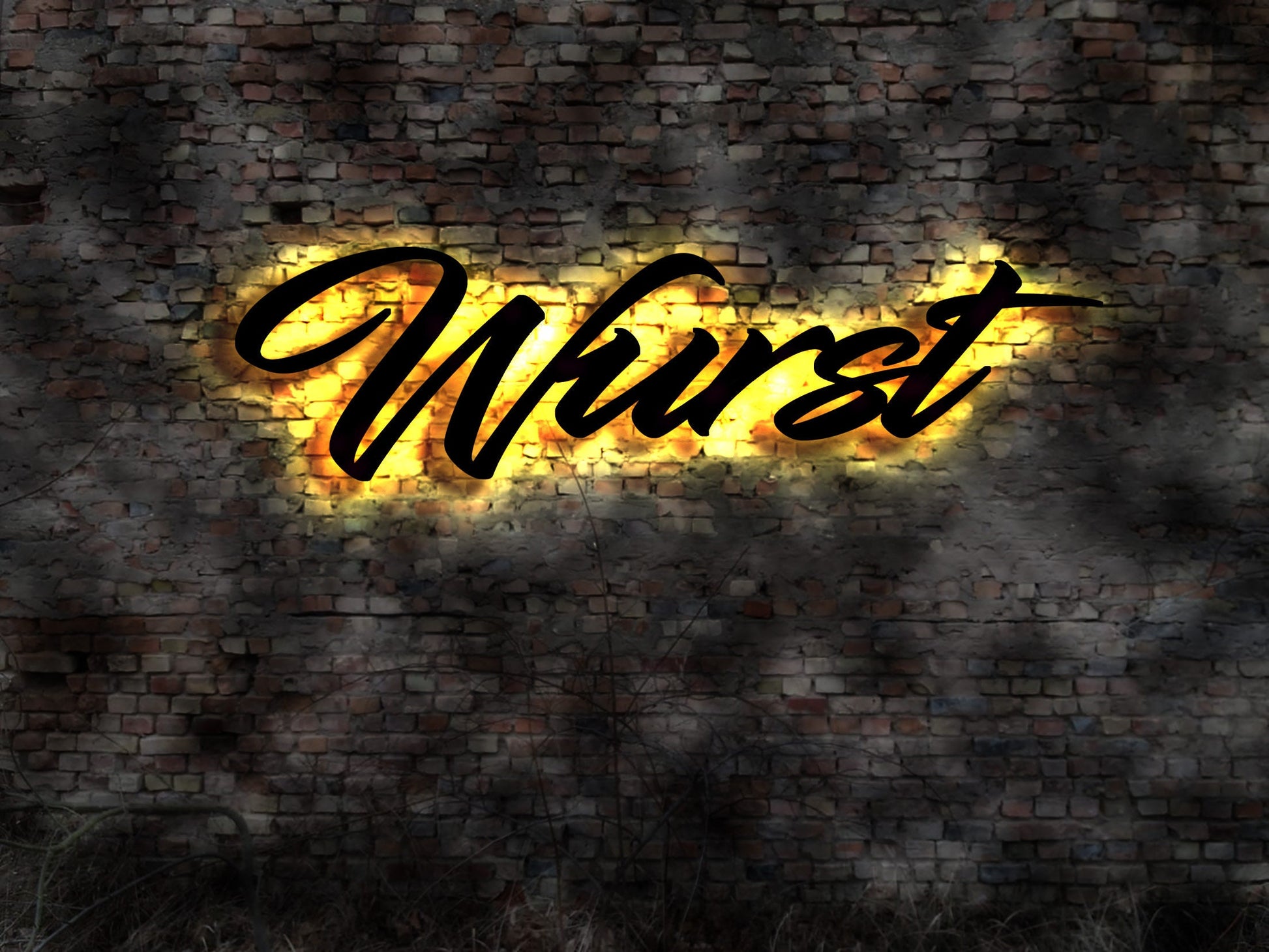Made of wood. Sign will be hanged with a little distance to the wall.