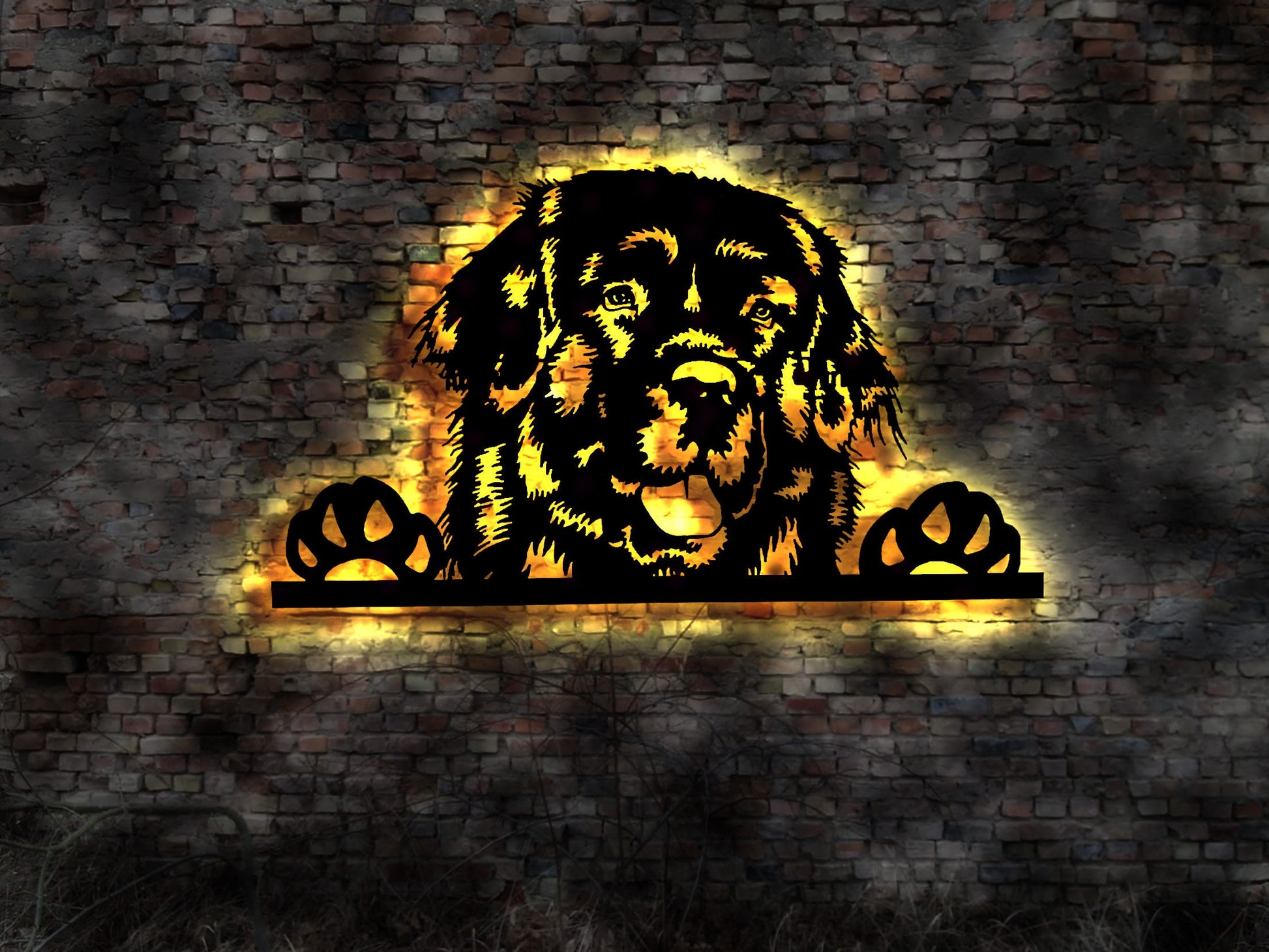 Neufundländer LED Wandbild aus Holz Welpen Welpe Buch Hund Dog Zucht Züchter Führleine Plüschtier Skulptur Spielzeug