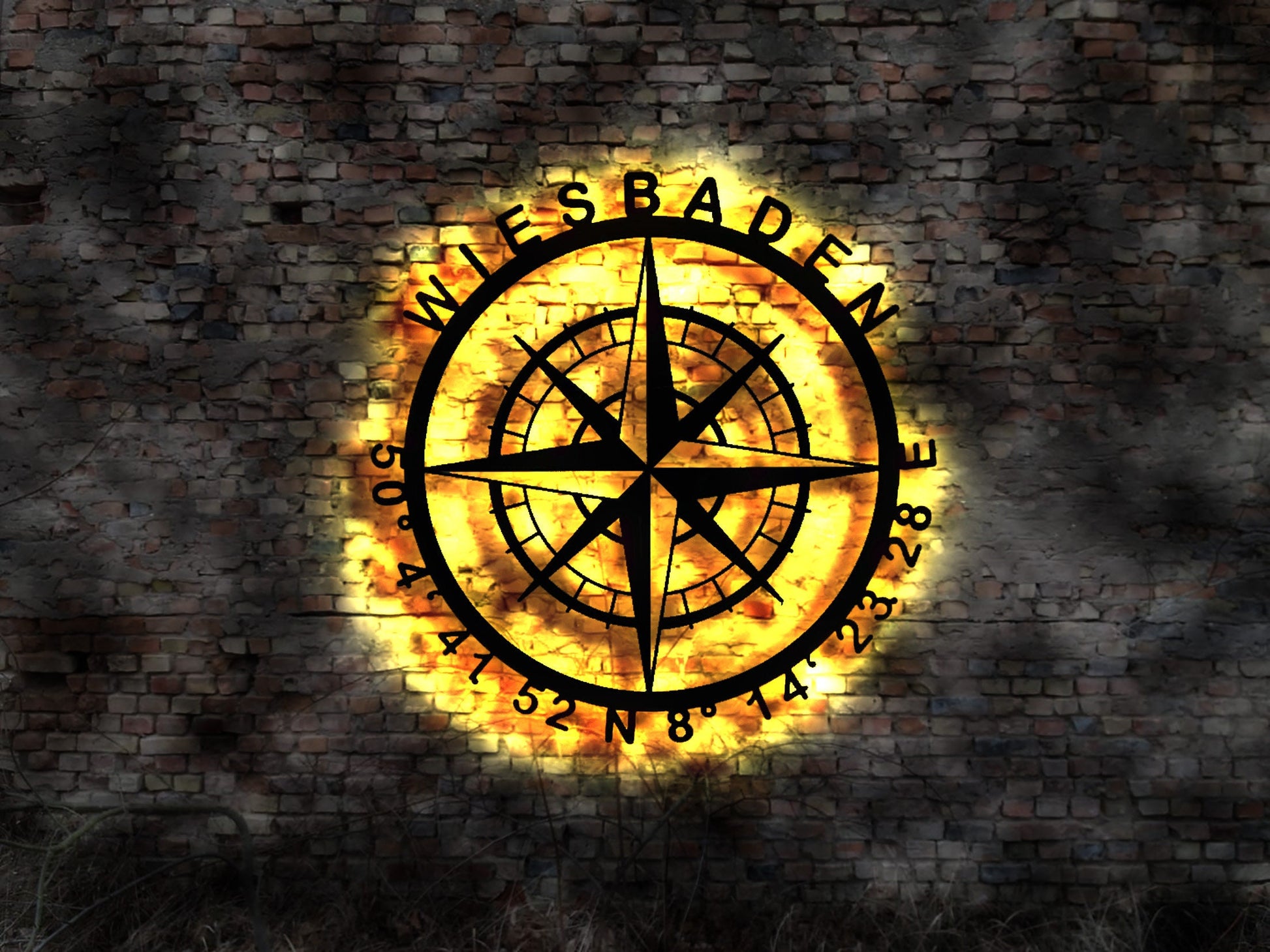 Wiesbaden LED Wandbild Holz Stadt AK Karte Map Wandsticker Leuchtbild Neonreklame Wandtattoo Reiseführer Silhouette