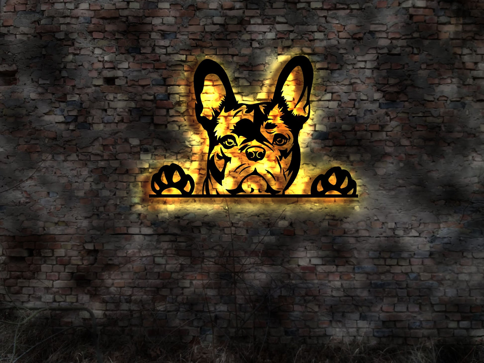 Französische Bulldogge Hund Hunde Futternapf Welpe Welpen Fresstation Futterstation Napf Futter Leckerlies LED Halsband French Bulldog