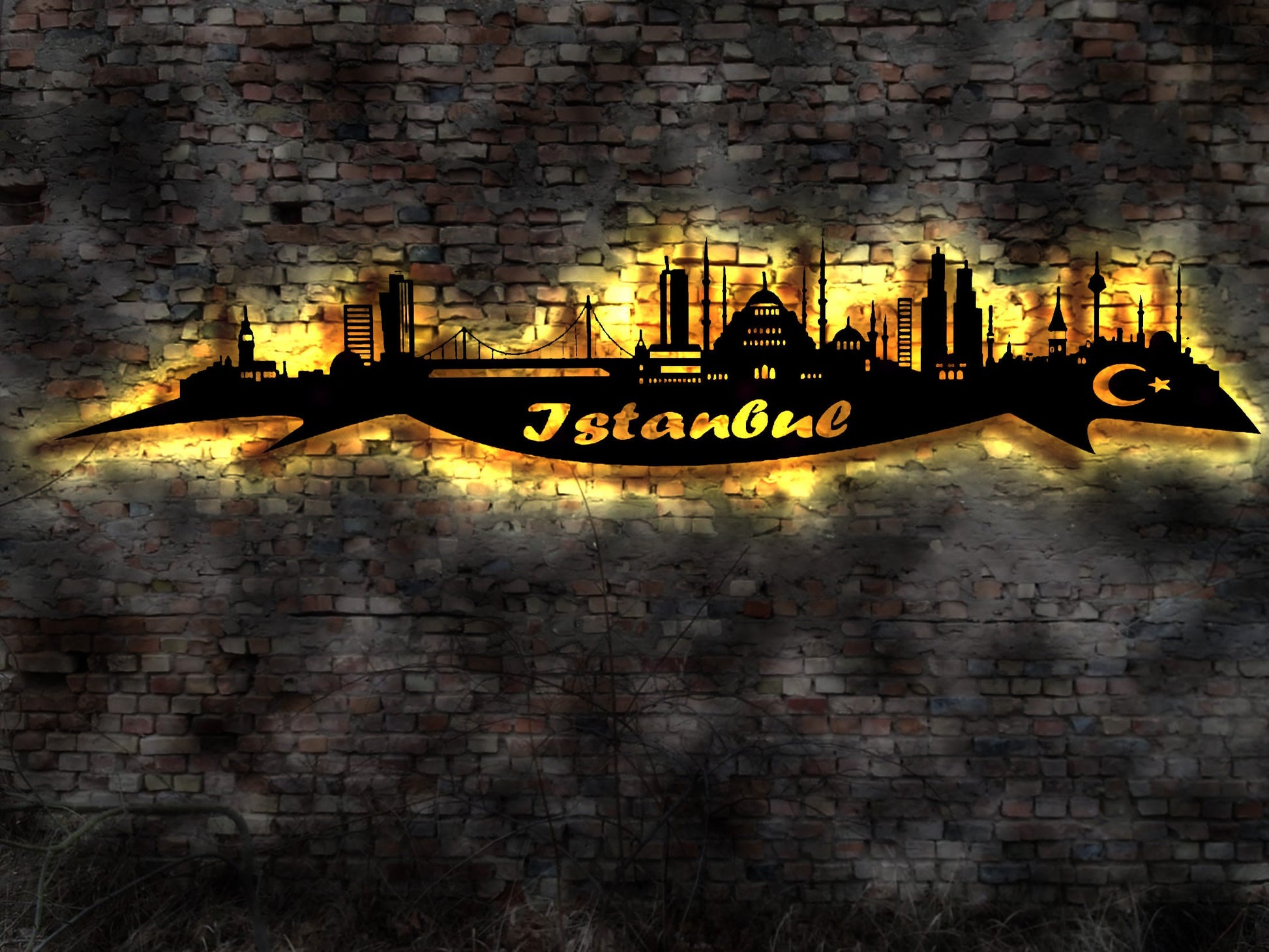 Skyline Istanbul Turkey Türkei Holz Stadt AK Karte Map Stadtplan Wandsticker Leuchtbild Neonreklame Wandtattoo Reiseführer Silhouette