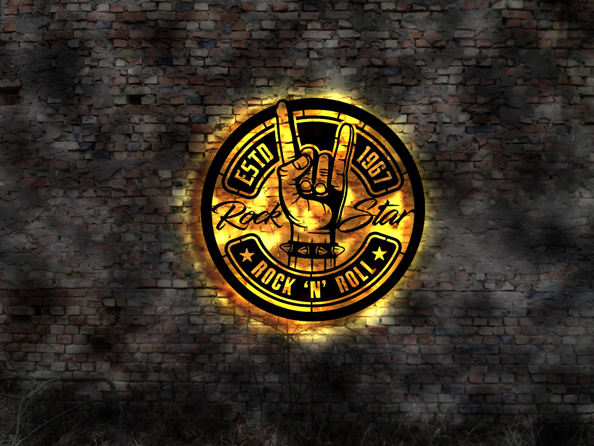 Hand Logo Rock and Roll Heavy Live Music Musik DJ Schild Gitarre LED Wandbild Neon sign Werbung Leuchtschild Bardeko BarSchild sign