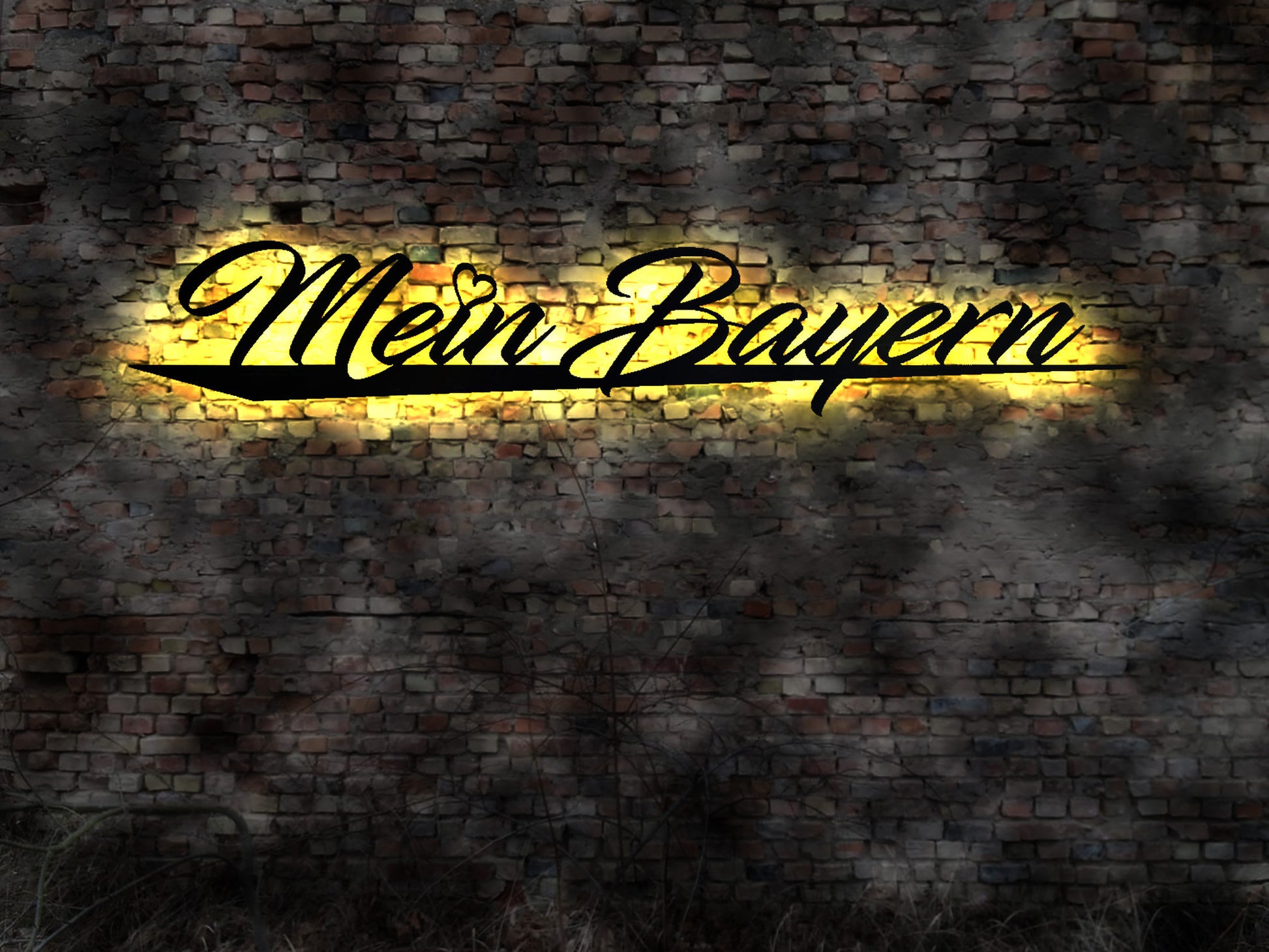 Mein Bayern Wandbild Holz Stadt AK Karte Map Stadtplan Wandsticker Leuchtbild Neonreklame Wandtattoo Reiseführer Silhouette