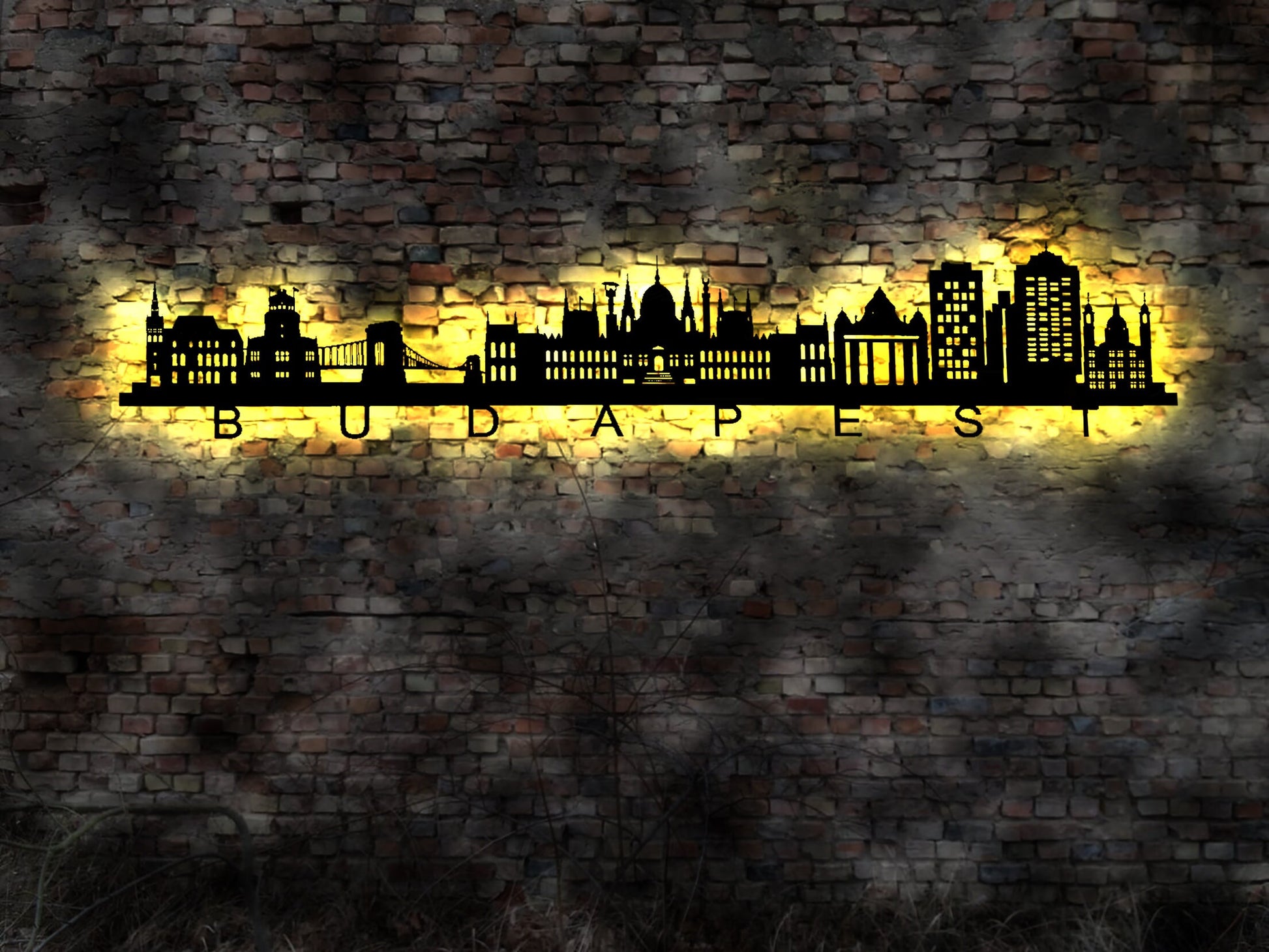 Skyline Budapest Hauptstadt Ungarn LED Wandbild Holz Stadt AK Karte Map