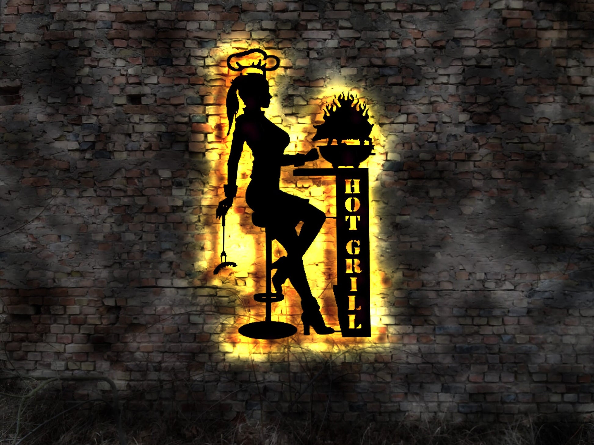 LED Wandbild Hot Grill Barbeque BBQ