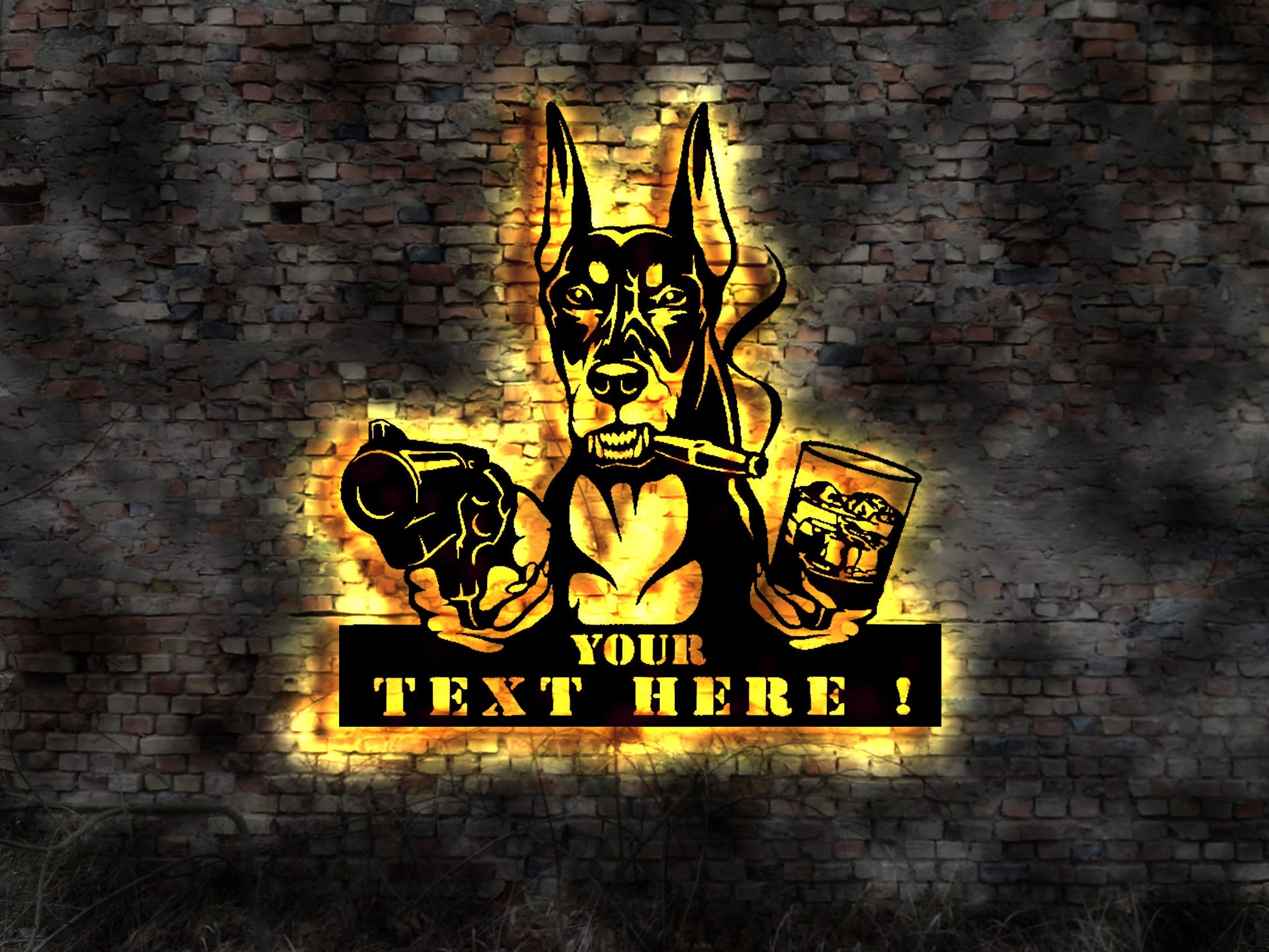 Made of wood. Sign will be hanged with a little distance to the wall.
