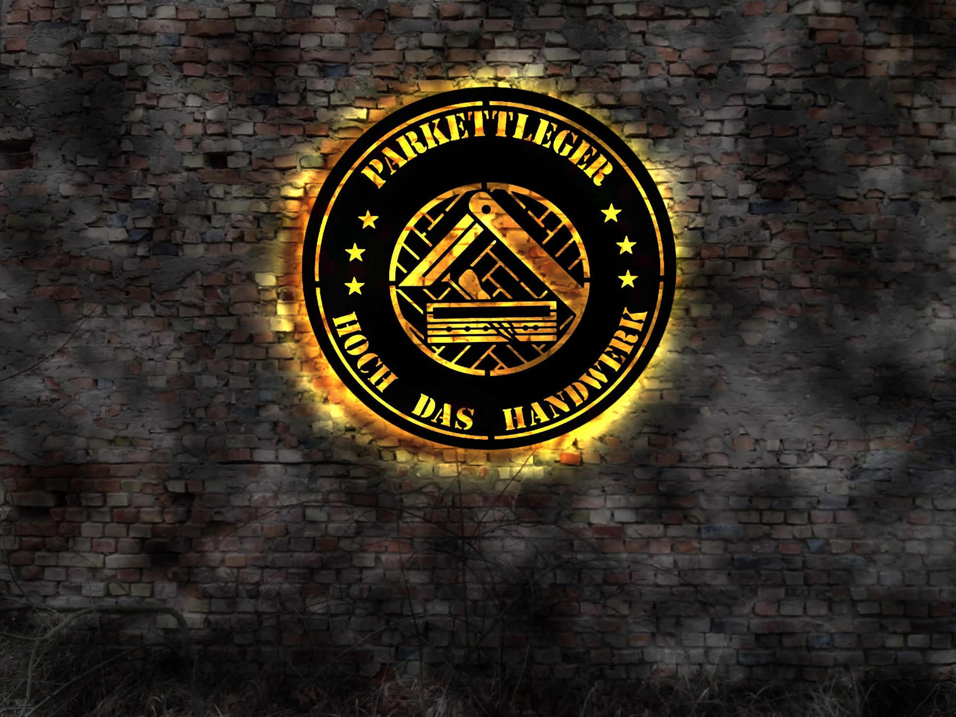 Parkettleger Bodenleger Koppelschloss Knieschoner Buch Aufkleber Zunft Gürtel Leuchtschild Bardeko Bar Fussbodenleger Parkett Holzfussboden