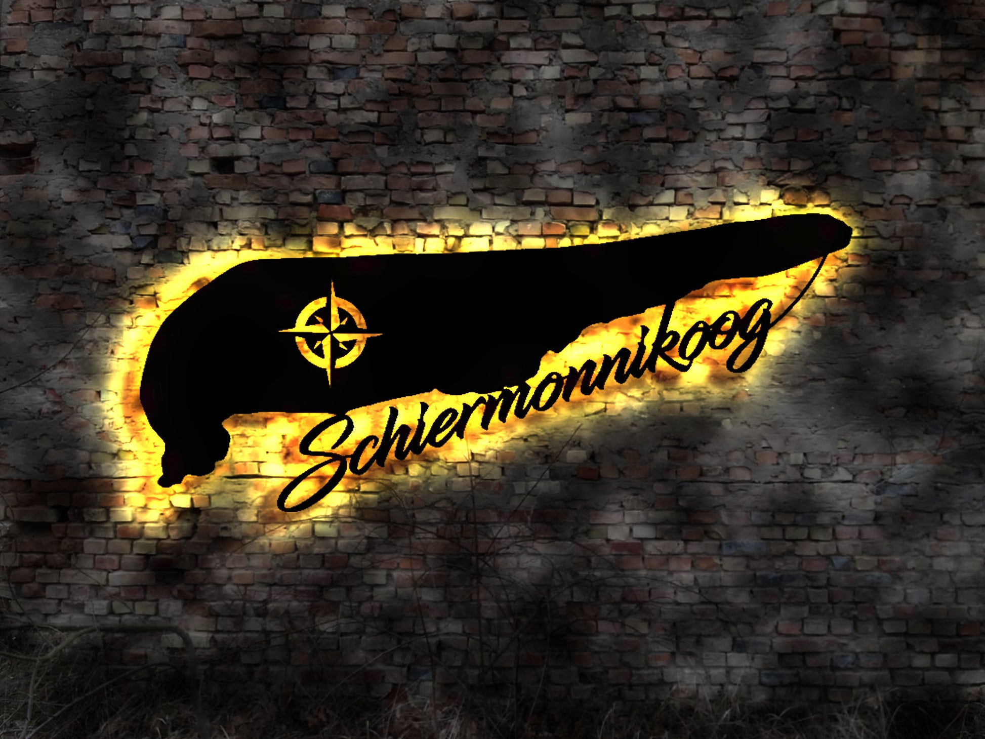 Skyline Schiermonnikoog LED Wandbild Insel Holz Stadt AK Karte Stadtplan Wandsticker Leuchtbild Wandtattoo Reiseführer Silhouette