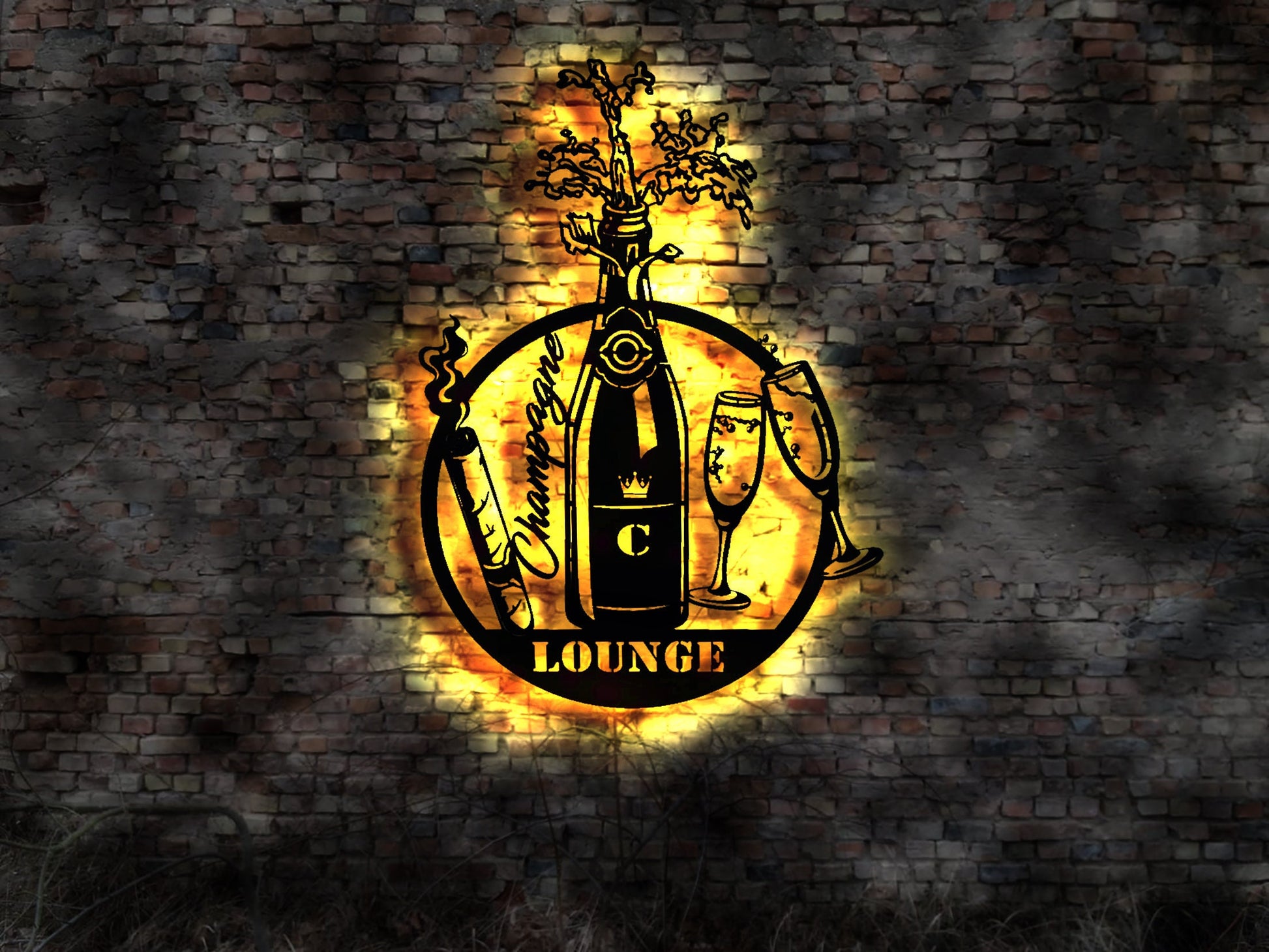 LED Leuchtschild Champagne Lounge Gläser Sekt Sektempfang Kühler sign Reklame auf Eis eisgekühlt