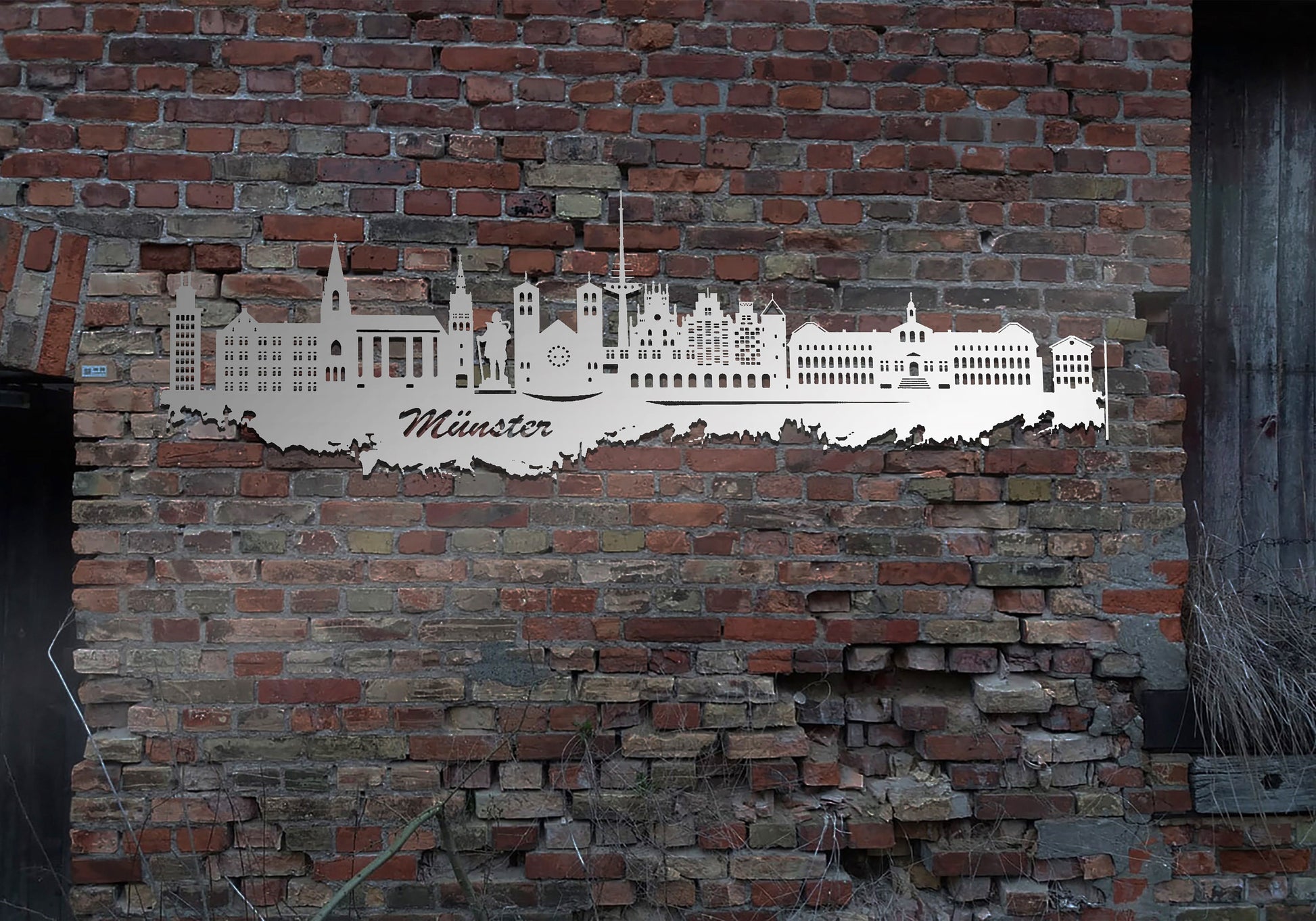 Skyline Metall Münster Schild Stahl rostfrei Metallkunst Schild Cortenstahl rostend rostig verrostet Corten