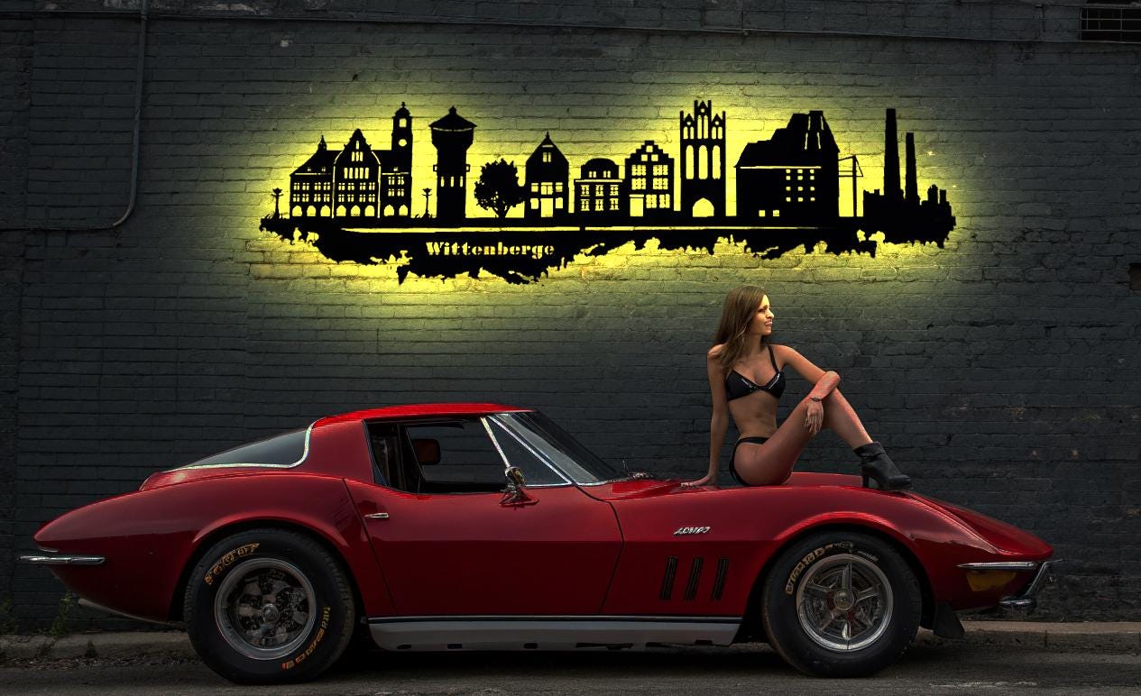 Skyline Stadt Wittenberge Brandenburg LED Wandbild Holz Stadt AK Karte Map Stadtplan Wandsticker Leuchtbild