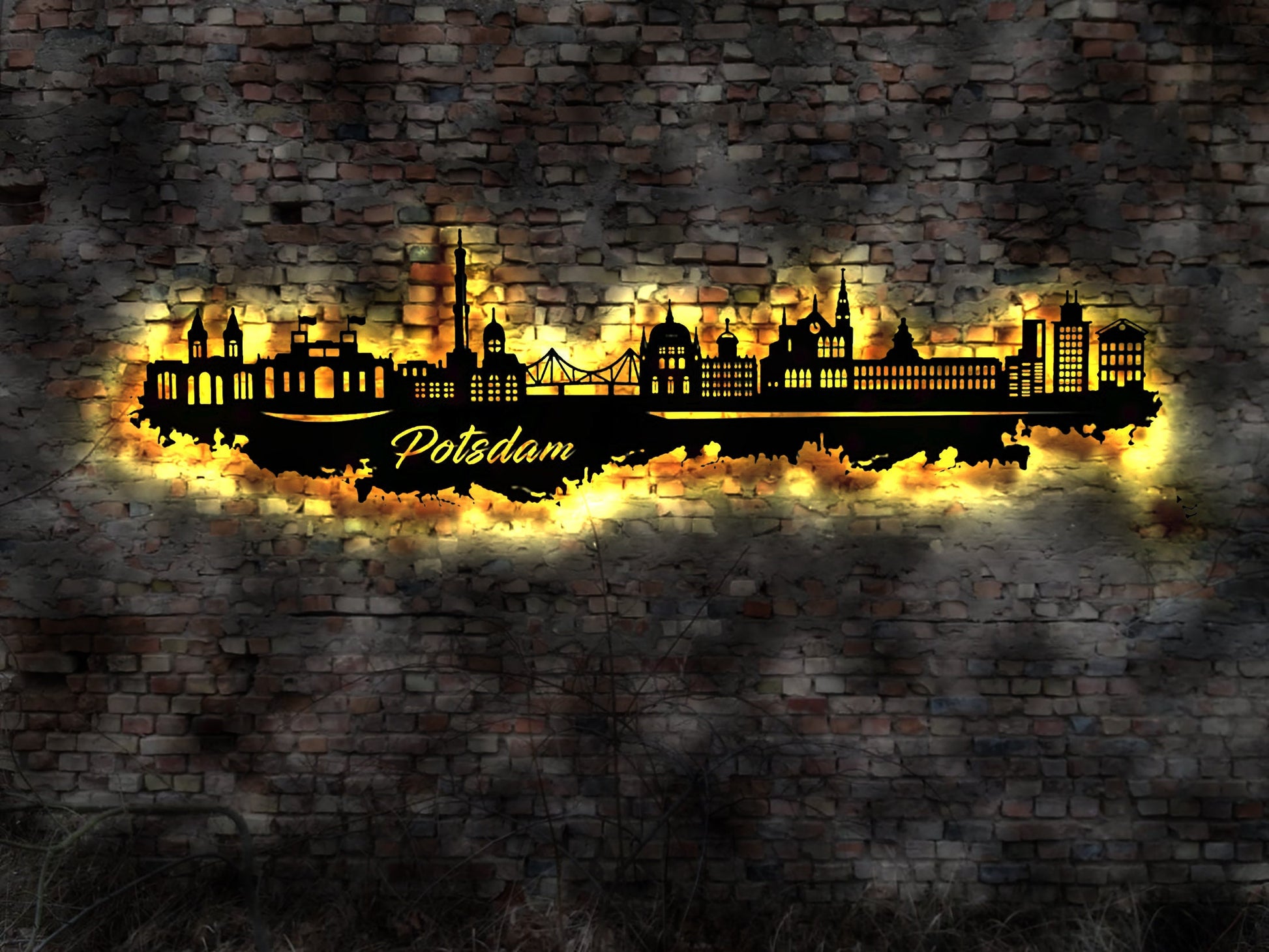 Skyline Potsdam LED Wandbild Holz Stadt AK Karte Map Stadtplan Wandsticker Leuchtbild Neonreklame Wandtattoo Reiseführer Silhouette