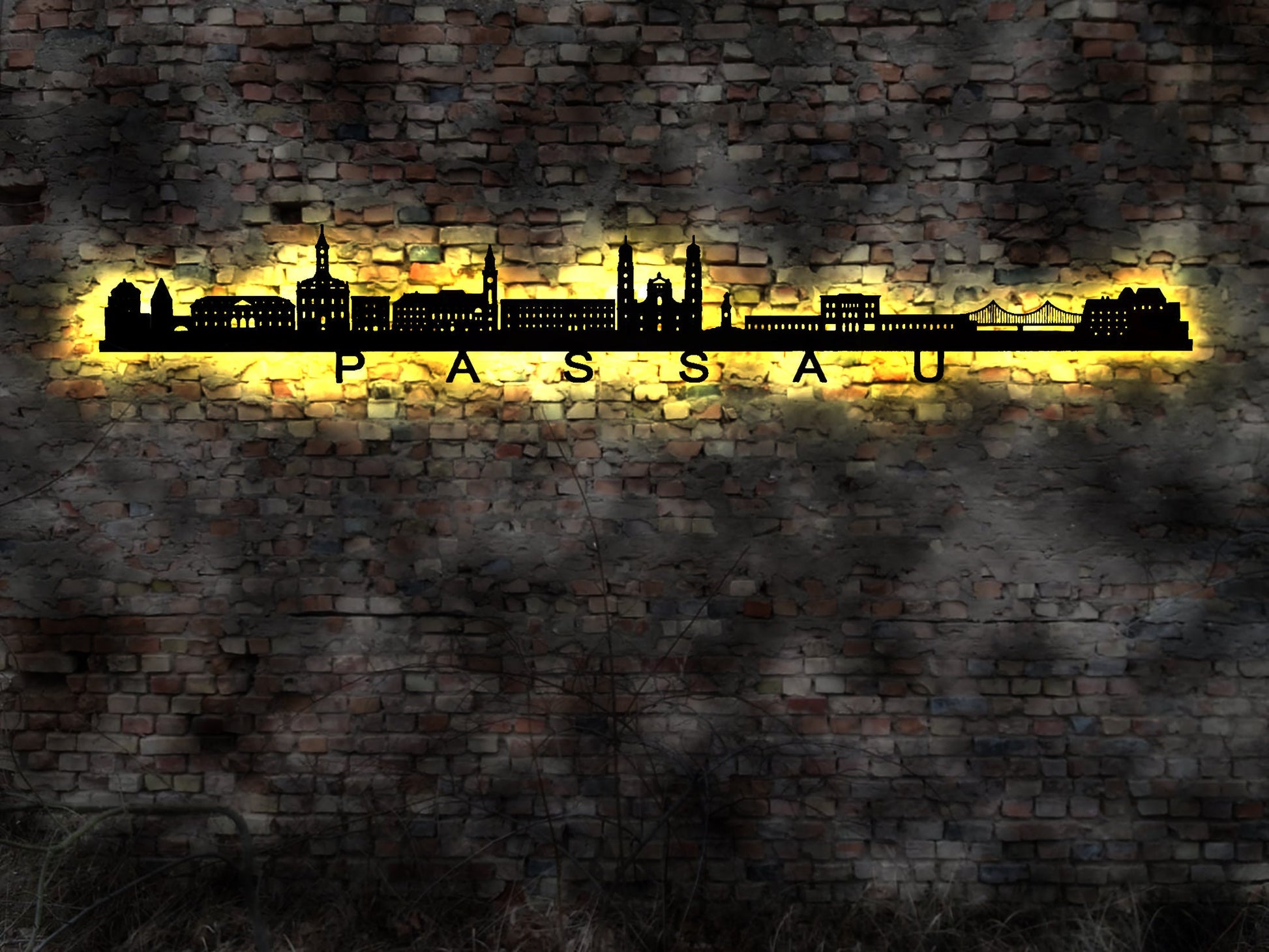Skyline Passau LED Wandbild Holz Stadt AK Karte Map Stadtplan Wandsticker Leuchtbild Wandtattoo Reiseführer Silhouette Haus Wohnung