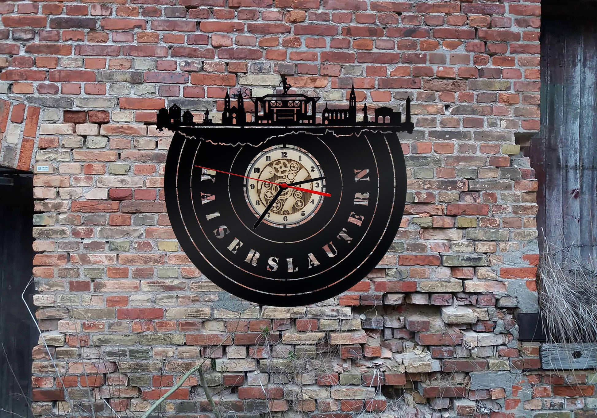 Uhr Stadt Kaiserslautern LED Wandbild Holz Wandtattoo Silhouette